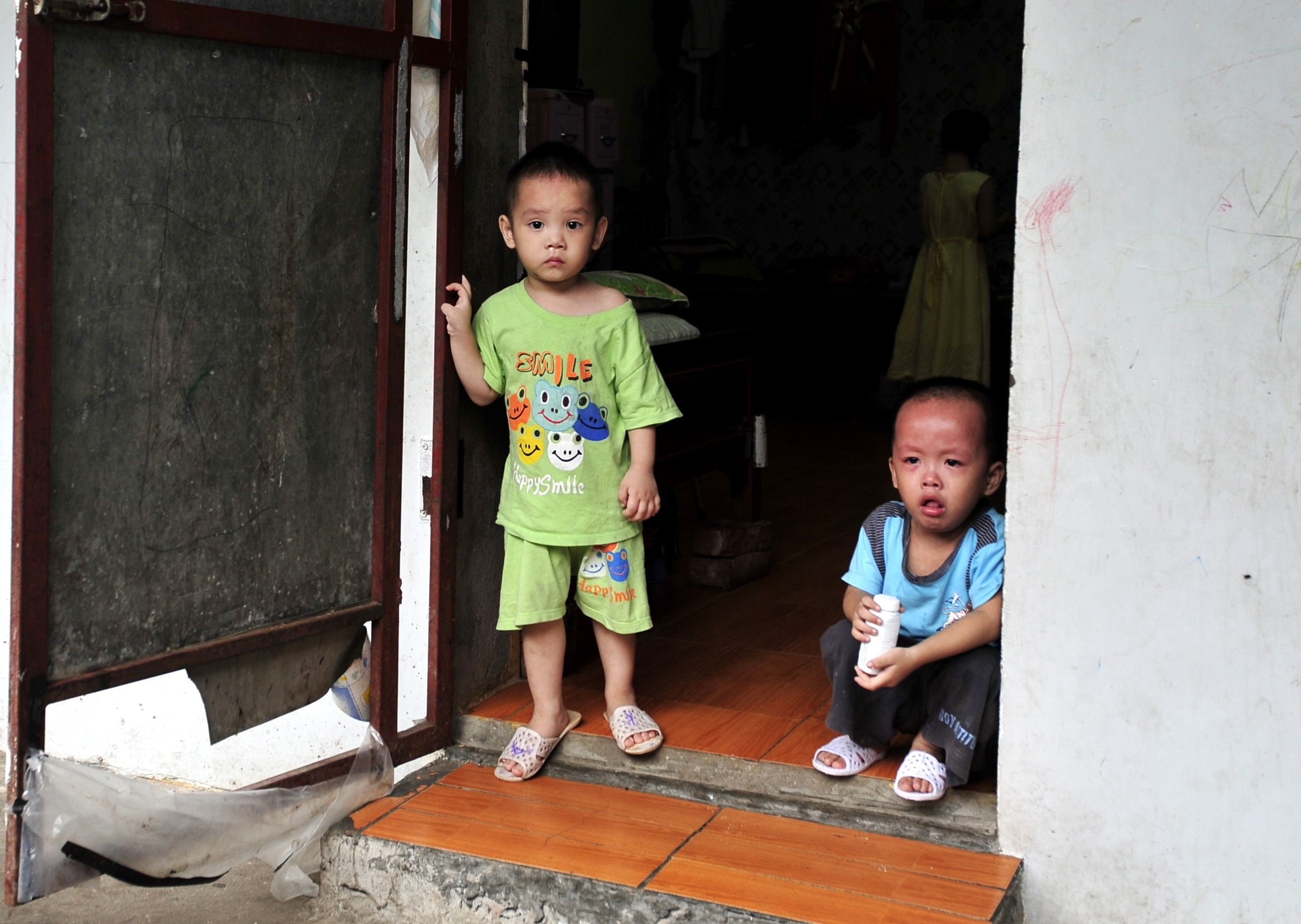 | Nhiều cháu vẫn bỡ ngỡ và ngó lại ngôi nhà mở. |