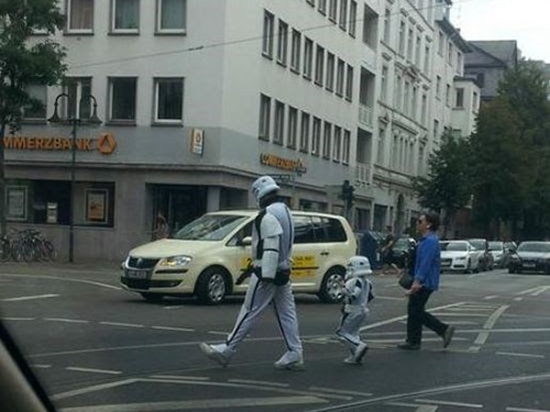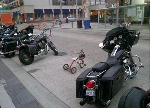 | Bố đi xe khủng, con đi xe đạp, nhưng dáng phải giống nhau. |