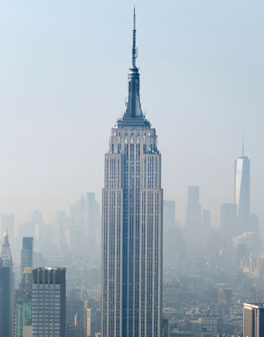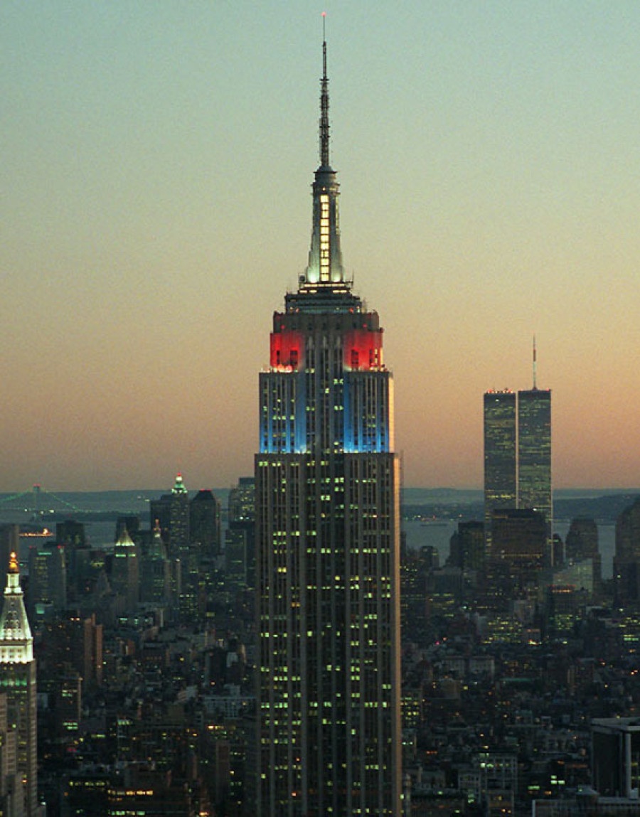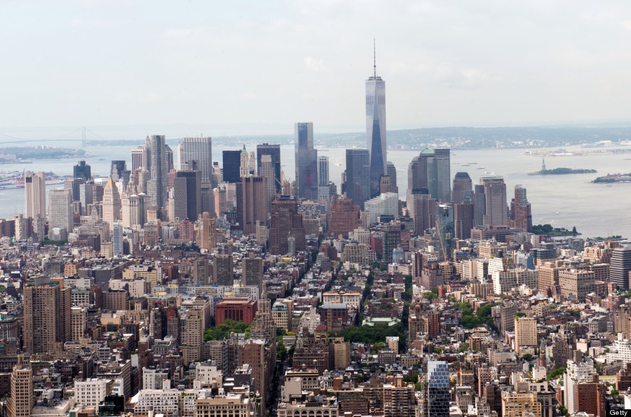 Trung tâm thương mại thế giới cũ và mới nhìn từ phía trước tòa nhà Empire State. Điểm cao nhất của công trình mới xây đạt 546 m với 94 tầng, 5 tầng hầm và 73 thang máy. Ảnh: Getty