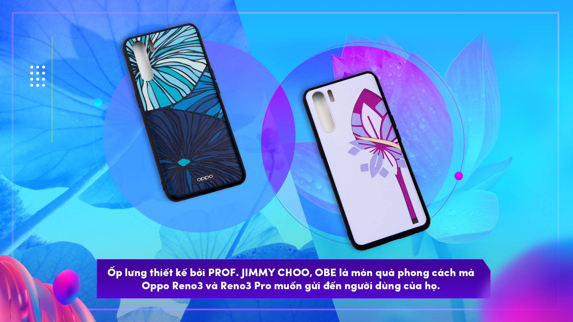 Trong lần ra mắt thế hệ smartphone gần đây, Oppo khiến giới công nghệ và tín đồ thời trang Việt Nam ngỡ ngàng khi giới thiệu BST ốp lưng điện thoại được thiết kế bởi Prof. Jimmy Choo, OBE, dành riêng cho bộ đôi Reno3, Reno3 Pro. Vẫn giữ phong cách tối giản, tinh tế vốn có của nhà thiết kế gốc Malaysia, nhưng những chiếc ốp lưng điện thoại lần này còn phảng phất nét văn hóa truyền thống của người Việt khi lấy cảm hứng từ hình tượng hoa sen.