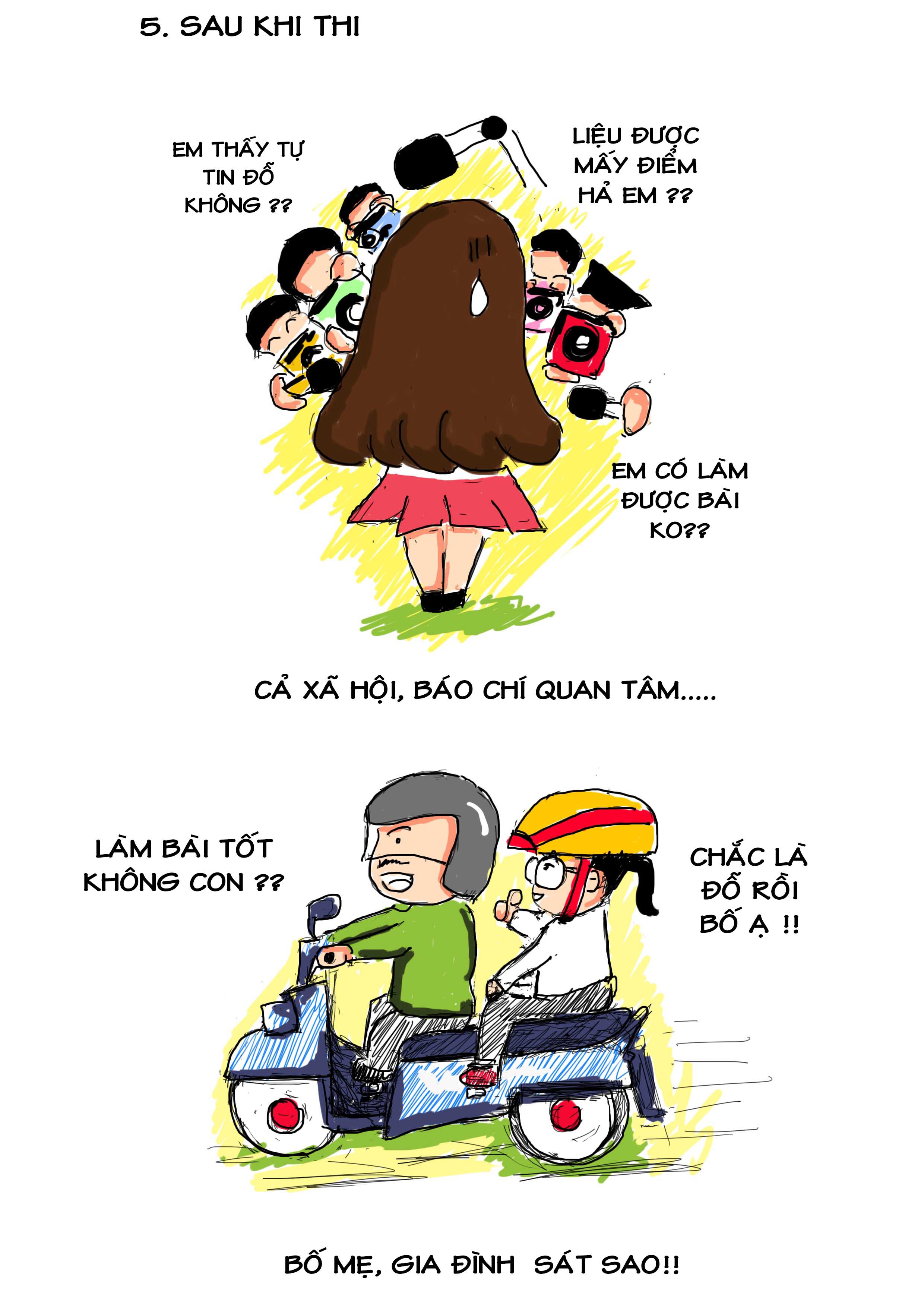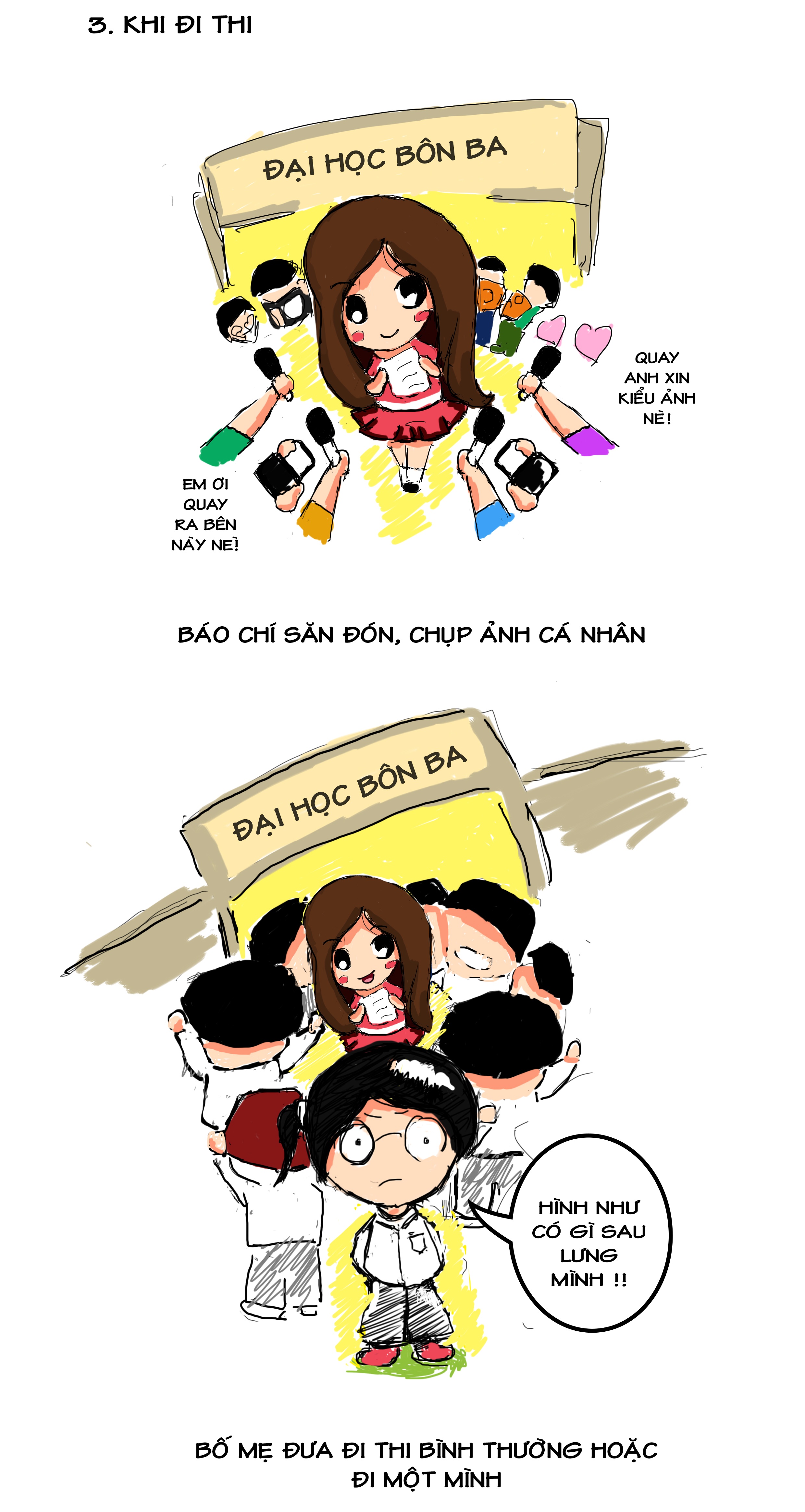 Sự nổi tiếng cũng đem đến cho các hot girl nhiều áp lực. Ngoài gia đình, bạn bè, kết quả thi của họ còn được rất nhiều người quan tâm. Bộ tranh vui này được thực hiện bởi học viên Trường đào tạo Mỹ thuật Đa phương tiện Arena Multimedia gửi tặng các sĩ tử trước khi bước vào kỳ thi tuyển sinh đại học đợt 2 diễn ra từ 8-10/7.