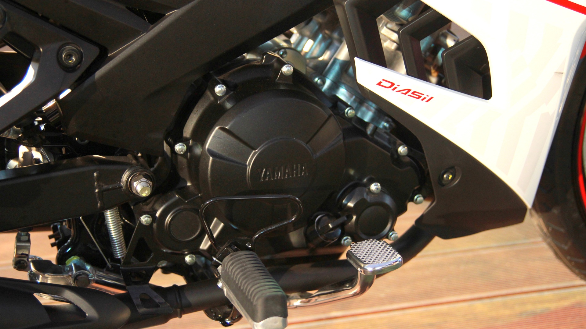 | Bề ngoài hai động cơ không có nhiều điểm khác nhau. Tuy nhiên, M1 được chế tạo bằng công nghệ đặc biệt dành cho đường đua, nhờ đó công suất và tốc độ vòng quay lớn hơn so với phiên bản dân dụng 1,5 lần. Vị trí đặt chân trên M1 cũng được kéo lùi ra sau, tạo tư thế ngồi thể thao. Exciter 150 vẫn để đặt chân và cần số ở vị trí truyền thống. |