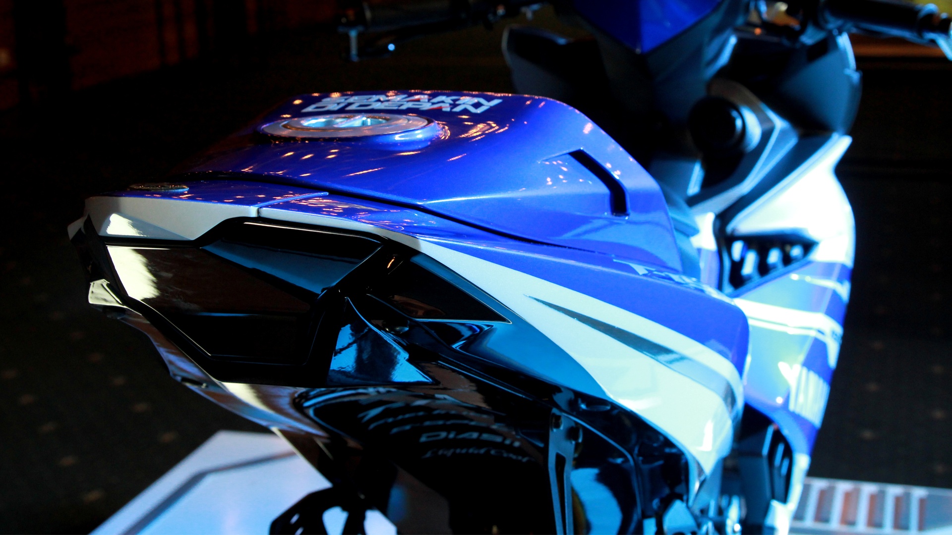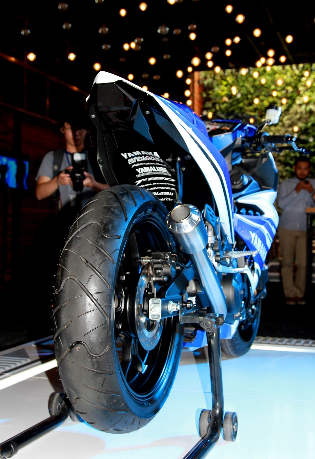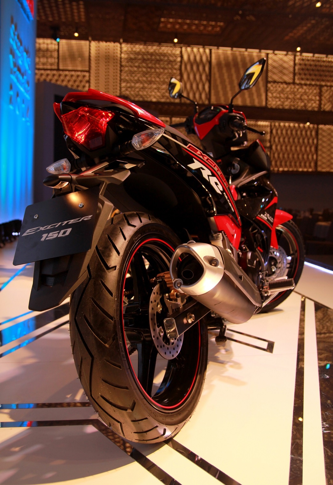 | Vành và lốp sau trên M1 được lấy từ xe thể thao R25, vì vậy kích thước bánh rộng tới 140mm. Exciter 150 có độ rộng bánh chỉ 120mm. Vè sau trên M1 cũng được loại bỏ nhằm giảm lực cản. Vè Exciter 150 cũng được biến đổi trông thể thao hơn, nhưng vẫn phải giữ lại để gắn biển số. |