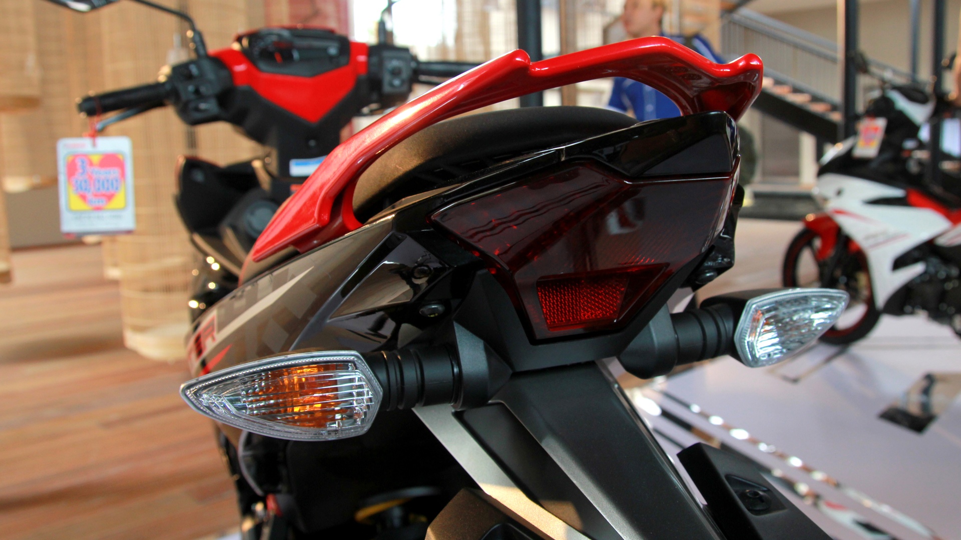 | Đèn hậu trên M1 được sơn khói mạnh mẽ, đồng thời loại bỏ đèn xi-nhan. Exciter 150 có cụm đèn hậu tương đối giống M1, tuy nhiên điểm khác là hai đèn xi-nhan tách rời. |