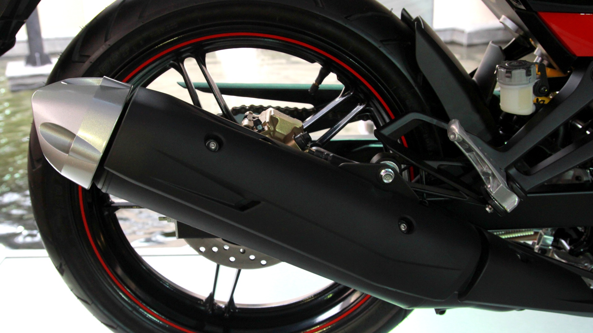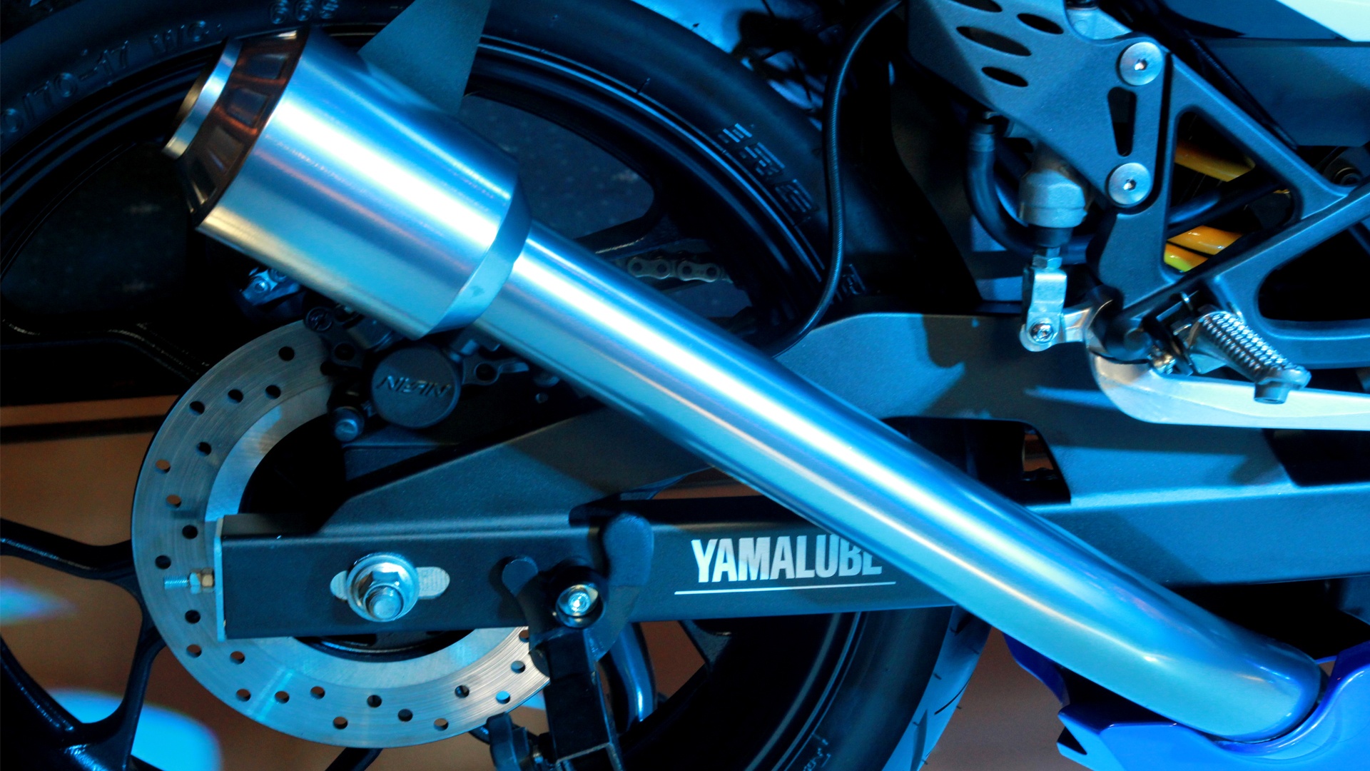 | Ống xả trên M1 là loại dùng cho đường đua, đường kính miệng ống lớn. Ống xả trên Exciter 150 được lấy từ mẫu nakedbike FZ150i. |