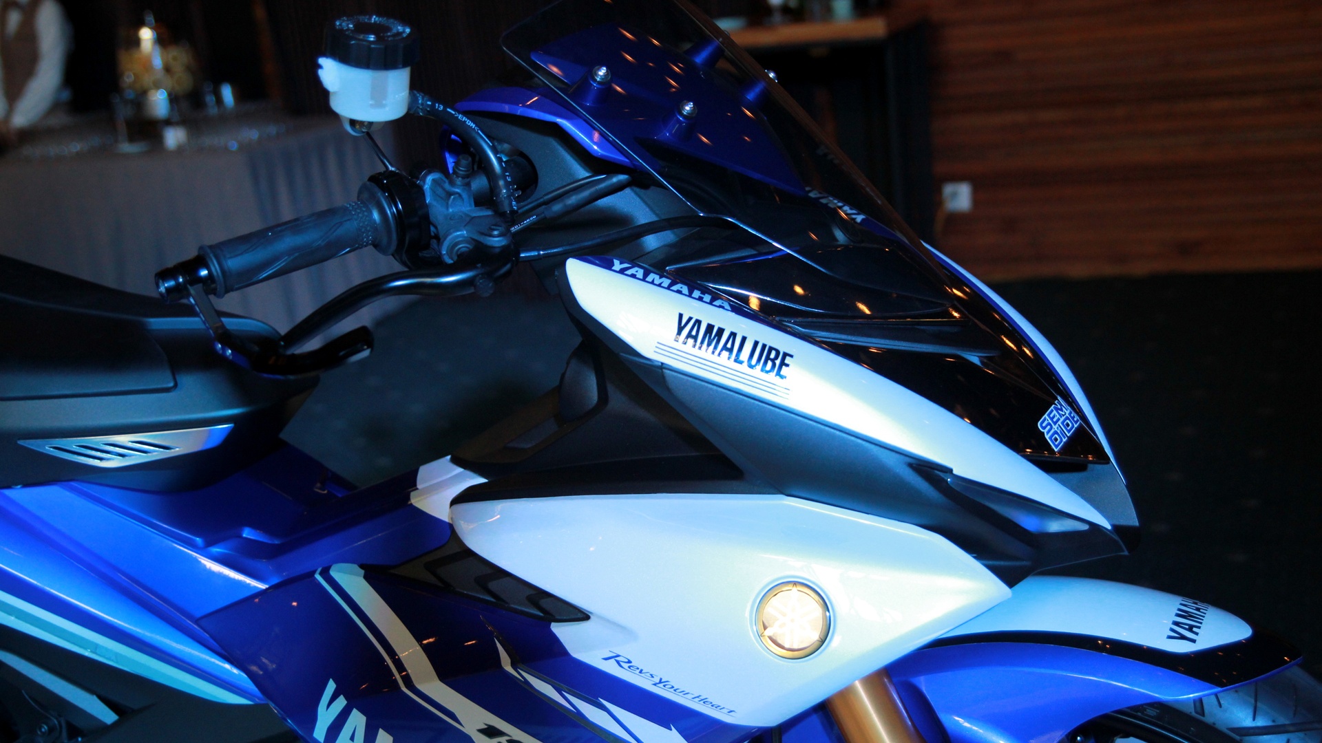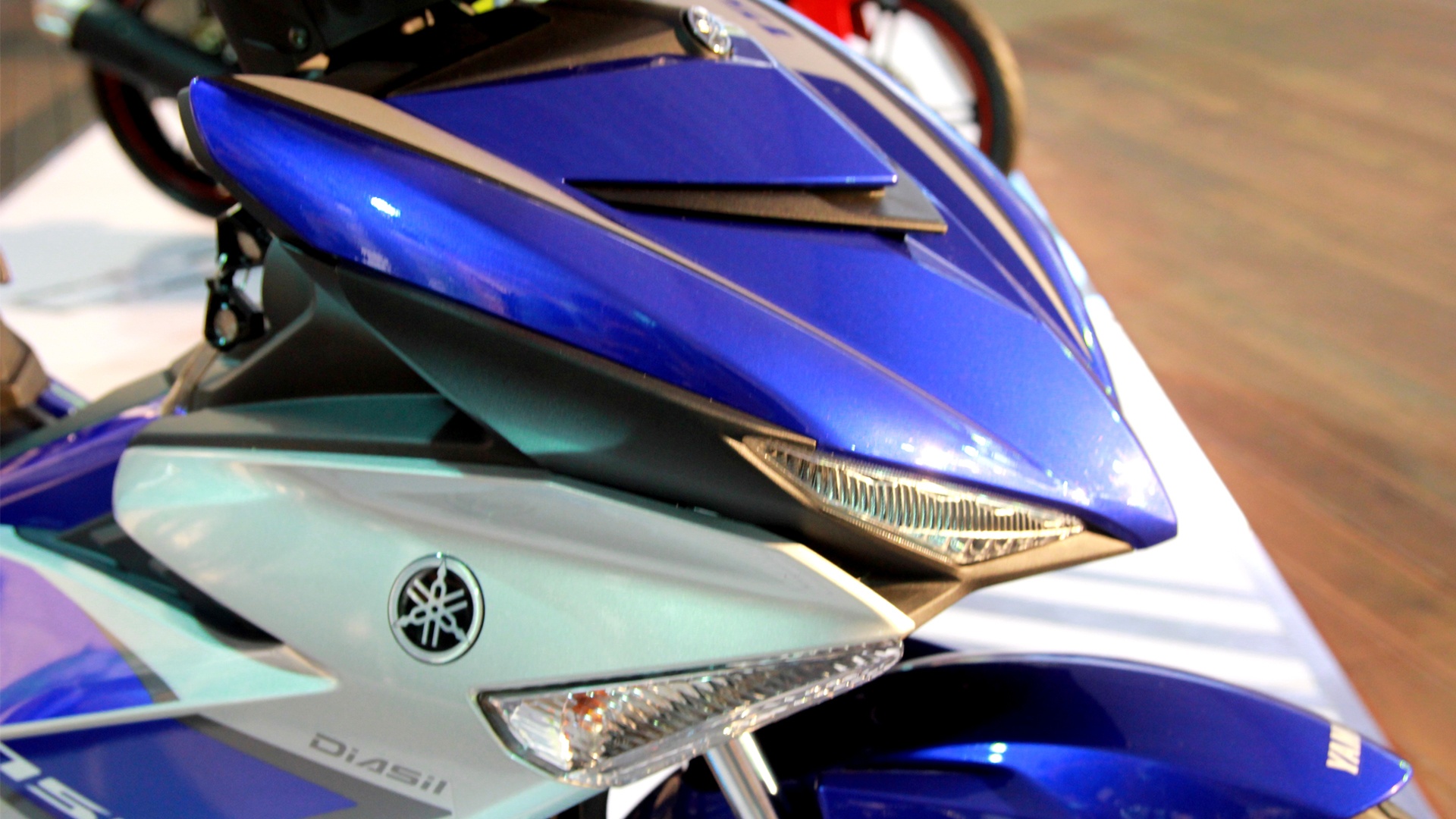 | Nhìn ngang đầu xe sẽ thấy M1 có đường nét cong hơn Exciter 150. Ngôn ngữ thiết kế trên M1 chịu ảnh hưởng của R6, trong khi Exciter 150 có thể thấy rõ những đường gân cứng cáp có trên R1 đời mới. Logo Yamaha trên M1 được lắp đèn phát sáng thay cho đèn xi-nhan cỡ lớn trên Exciter 150. |