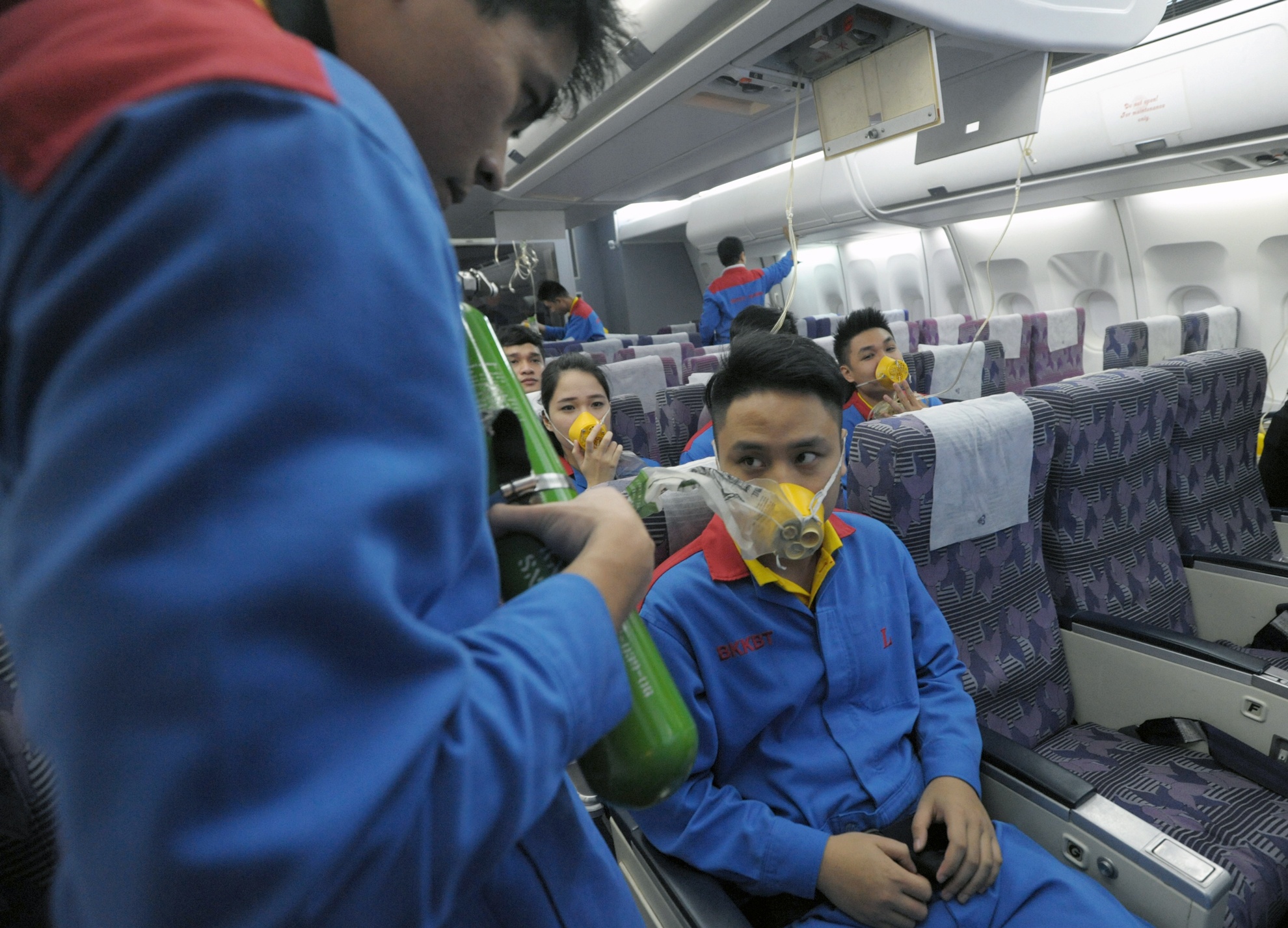 Máy bay mất áp suất đột ngột, mặt nạ dưỡng khí rơi xuống, không phải hành khách nào cũng biết sử dụng công cụ này. Tiếp viên cần trợ giúp khách.