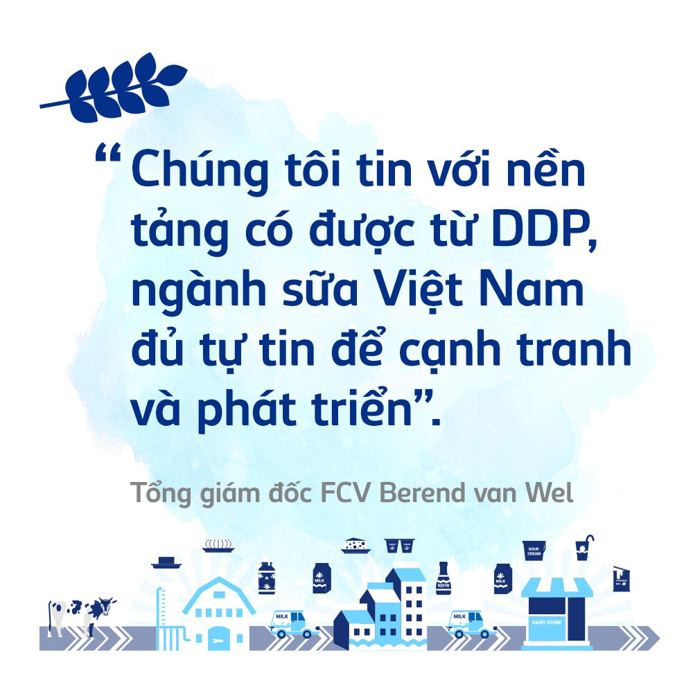 Chia sẻ về cột mốc ý nghĩa này, ông Berend van Wel, Tổng giám đốc FCV, cho biết: "Sứ mệnh mới được xây dựng dựa trên 3 trọng tâm toàn cầu của tập đoàn, đồng thời được cụ thể hóa cho Việt Nam. Đó là giáo dục và phát triển dinh dưỡng cho trẻ em; nâng cao cuộc sống của người dân, đặc biệt là các nông hộ chăn nuôi bò sữa hợp tác với hãng; bảo vệ môi trường và phát triển bền vững".