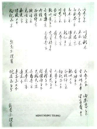 | Một trong những bài Minh Mạng thang chép tay bằng chữ Hán. |
