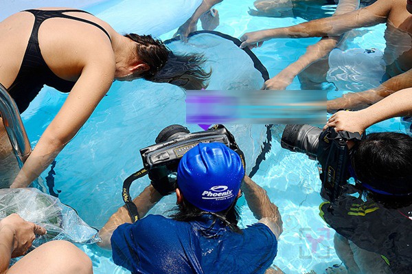 | Người mẫu này đang chuẩn bị chụp hình dưới nước. |