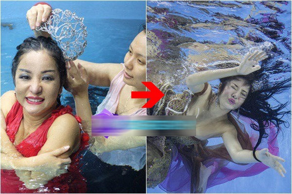 | Thúy Nga ngâm mình dưới nước 7 tiếng đồng hồ nhưng kết quả vẫn là những tấm hình sặc nước. |
