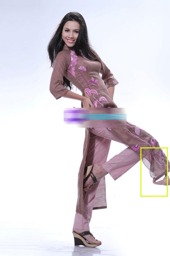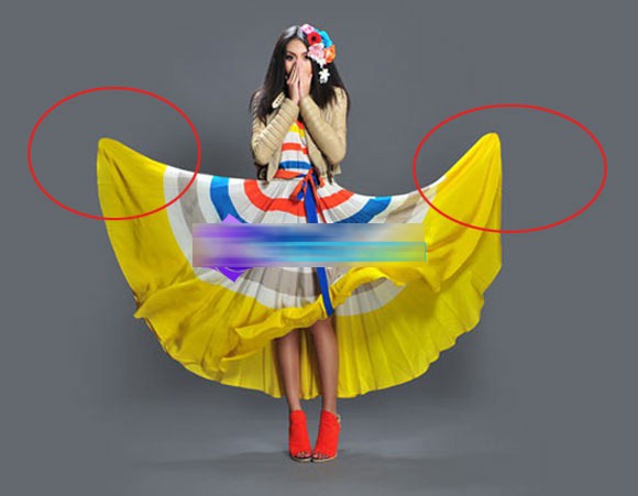 | Không có gió, quạt nhưng màn tốc váy của Tăng Thanh Hà đành nhờ hai người bạn cầm hộ và xóa bằng photoshop. |
