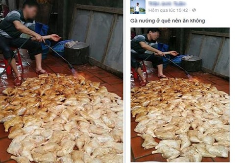 Bức ảnh chụp lại cảnh hàng trăm chiếc đùi gà được xếp đầy dưới nền gạch ẩm ướt được một người đàn ông dùng ngọn lửa gas (đèn khò) để “nướng” vàng ươm những ngày qua gây xôn xao cộng đồng mạng. Không ít người xem bày tỏ cảm xúc choáng váng bởi cách chế biến thực phẩm này.