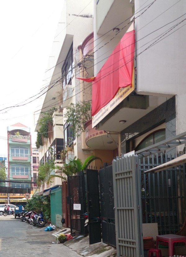 | Công ty Rừng Toàn Cầu ở TP.HCM đã dùng dải băng đỏ che biển hiệu. |