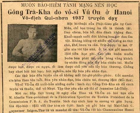 | Bài quảng cáo về võ sĩ Vũ Ổn trên Tiểu Thuyết Thứ Bảy số 273, phát hành ngày 26/8/1939. |