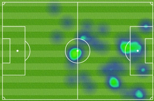 | Khu vực hoạt động của Luis Suarez trong cuộc đụng độ Tottenham. |