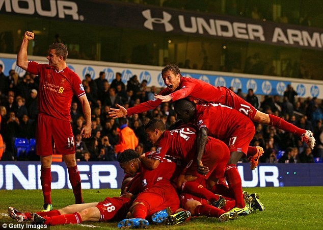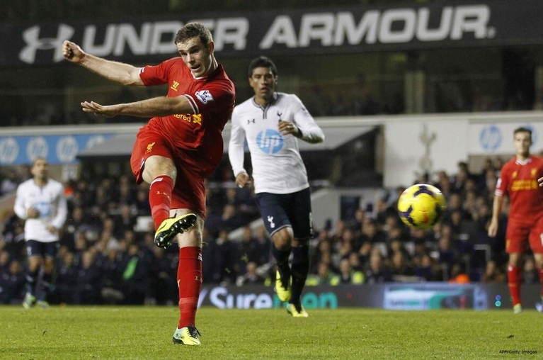 | Phút 40, Lloris truy cản thành công cú sút của Suarez nhưng ở cú volley ngay sau đó của Henderson, thủ môn của Tottenham đành bó tay. |