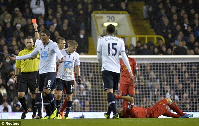 | Tiền vệ người Brazil nhận thẻ đỏ, đẩy Tottenham vào cảnh chơi với 10 người trên sân. |