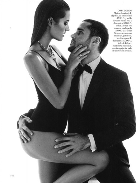 | Tiền vệ Atletico Madrid - Mario Suarez - vừa thực hiện một bộ ảnh vô cùng nóng bỏng cùng cô bạn gái Malena Costa cho tạp chí Vouge số ra tháng 2 tới. |