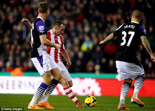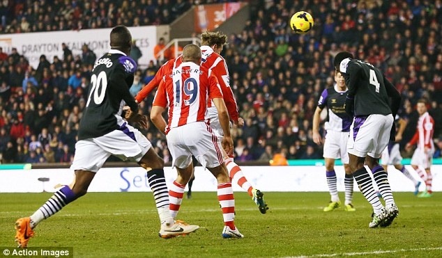 Quyết không chịu cảnh trắng tay, Stoke tràn lên tấn công và họ đã có được bàn rút ngắn tỷ số ở phút 39. Người ghi bàn là Peter Crouch.