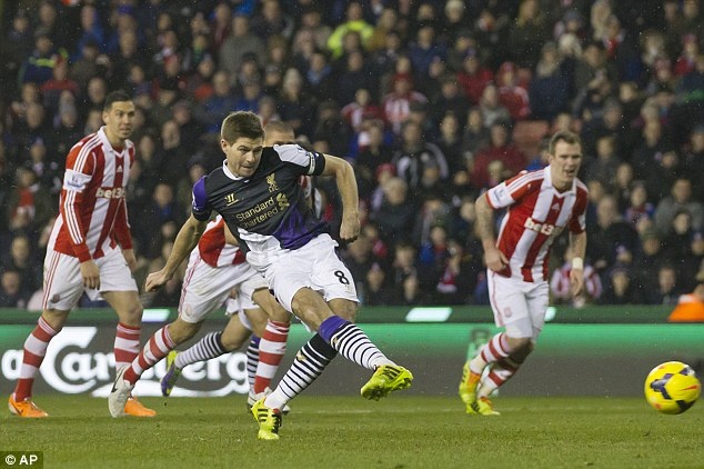 | Trên chấm phạt đền, thủ quân Gerrard không mấy khó khăn để giúp Liverpool thiết lập thế dẫn trước. |