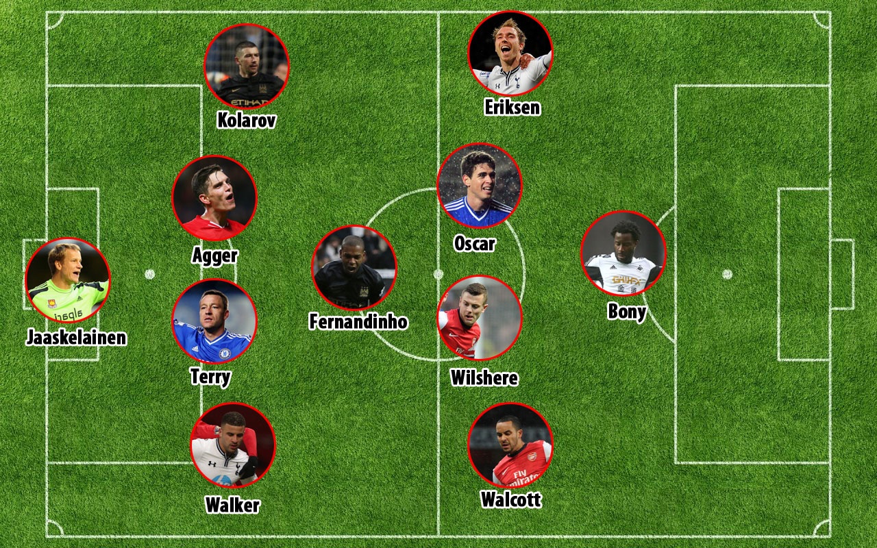 | Đội hình tiêu biểu vòng 20 Ngoại hạng Anh theo sơ đồ chiến thuật 4-1-4-1. |