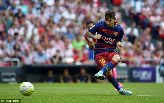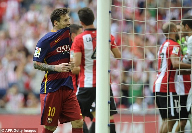 | Lionel Messi tỏ ra tiếc nuối khi không có bàn thắng trong trận đầu tiên ở mùa giải 2015 - 2016. |