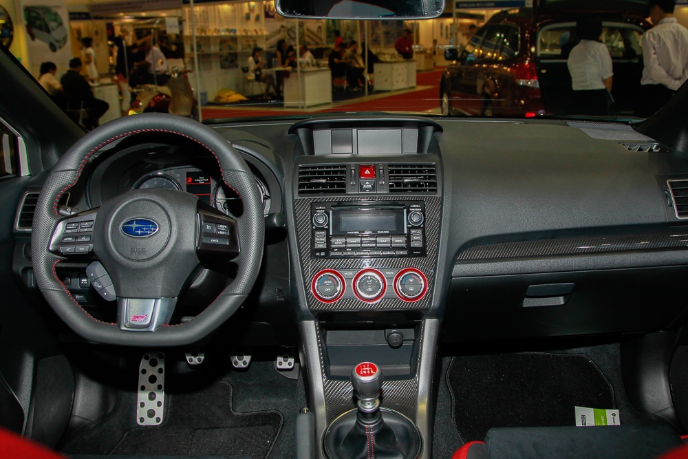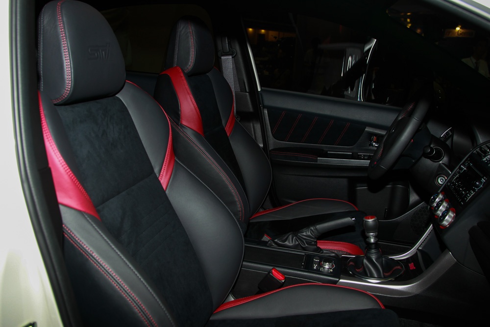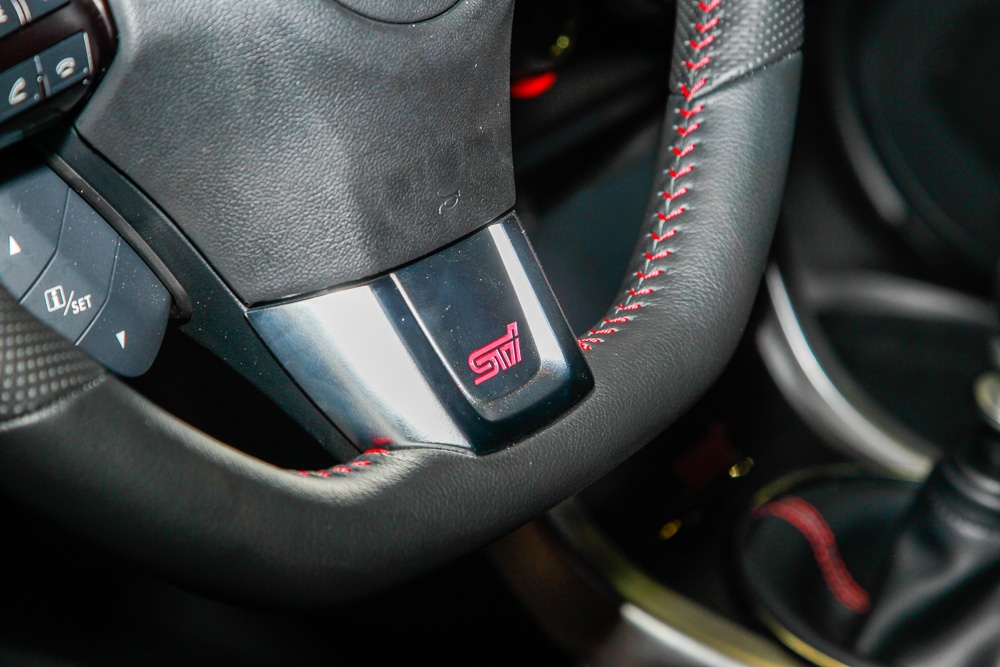 | Biểu tượng STI - phân nhánh phát triển xe đua của Subaru - xuất hiện ở nhiều nơi trên xe. |