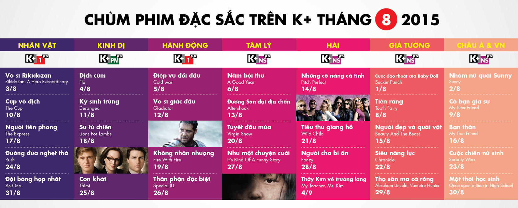 Cuộc sống ngày càng căng thẳng và nhiều lo toan, nên những bộ phim tình cảm hài đủ sức mang đến những tràng cười cho khán giả ngày càng được lựa chọn nhiều hơn. Đây là lý do các kênh truyền hình K+ liên tiếp giới thiệu tới khán giả màn ảnh nhỏ của mình những bộ phim hài lập kỷ lục doanh thu của điện ảnh thế giới cũng như ở Việt Nam.