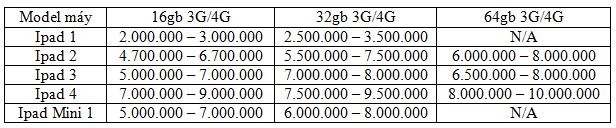 Để đáp ứng nhu cầu muốn nâng cấp các máy iPad cũ lên các phiên bản iPad mới như iPad Air, iPad mini 2 retina, Viettablet triển khai chương trình ưu đãi. Giá trung bình thu mua các loại iPad cũ như sau: