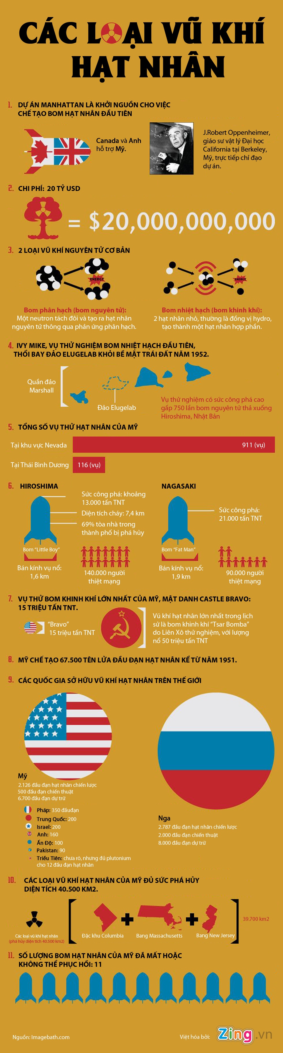Vũ khí hạt nhân lớn nhất trong lịch sử là bom nhiệt hạch "Tsar Bomba" do Liên Xô thử nghiệm, với lượng nổ 50 megaton, tức 50 triệu tấn thuốc nổ TNT.