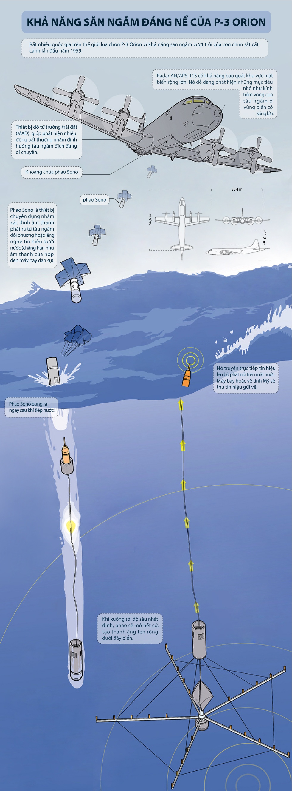 | Khả năng săn ngầm đáng nể của máy bay P-3 Orion. |