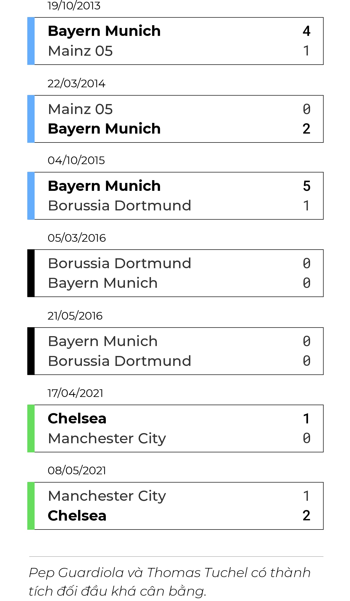 Ở 2 trận đấu này, Chelsea đều giành chiến thắng. Trong khi HLV Tuchel sử dụng đội hình quen thuộc, HLV Guardiola lại đưa ra những sự thử nghiệm. Nói cách khác, Chelsea vẫn chưa chạm trán với đội hình mạnh nhất của Man City.