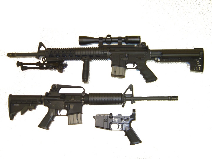 AR-15 là phiên bản súng trường dân dụng của M16. Tuy nhiên trước khi trở thành vũ khí dân dụng, nó là phiên bản đầu tiên của khẩu M16 sau này. AR-15 là loại súng trường phổ biến nhất ở Mỹ, với cỡ nòng 5,56 mm, nặng 8,6 kg, dài 990 mm. Quân đội Mỹ thử nghiệm nó vào khoảng từ năm 1958 và sử dụng hàng loạt vào những năm 1960. Ảnh: Wiki