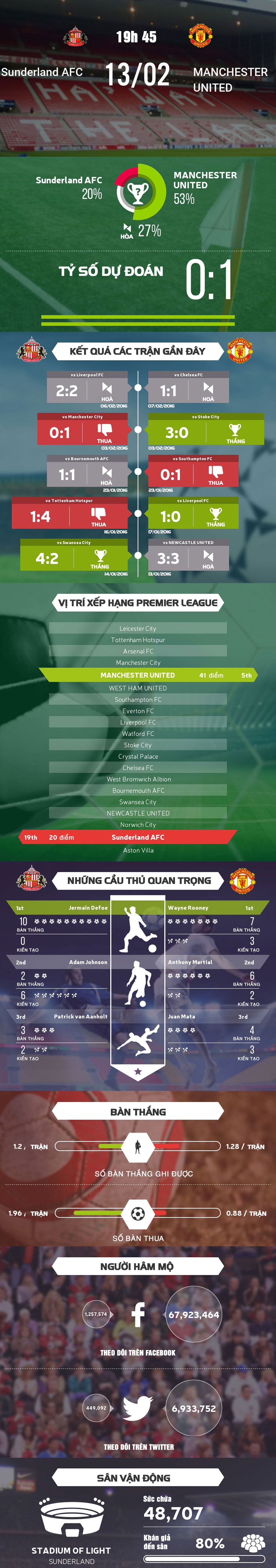 Đang chơi không tốt khi đứng áp chót bảng xếp hạng, Sunderland sẽ gặp khó khăn ở vòng 26 với việc đón tiếp MU - đội bóng mà họ thua tới 58 trận trong những lần đối đầu trước đây.
