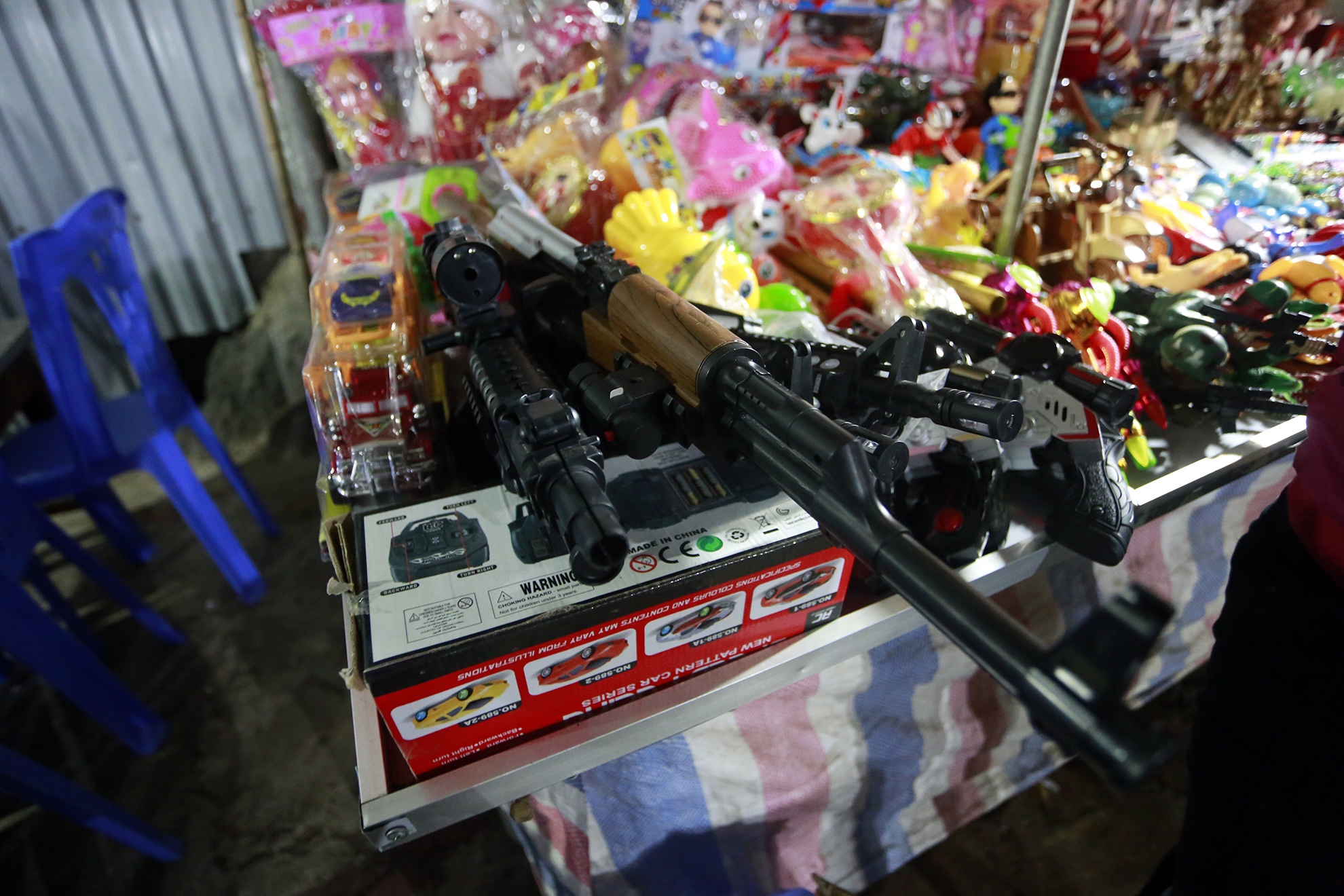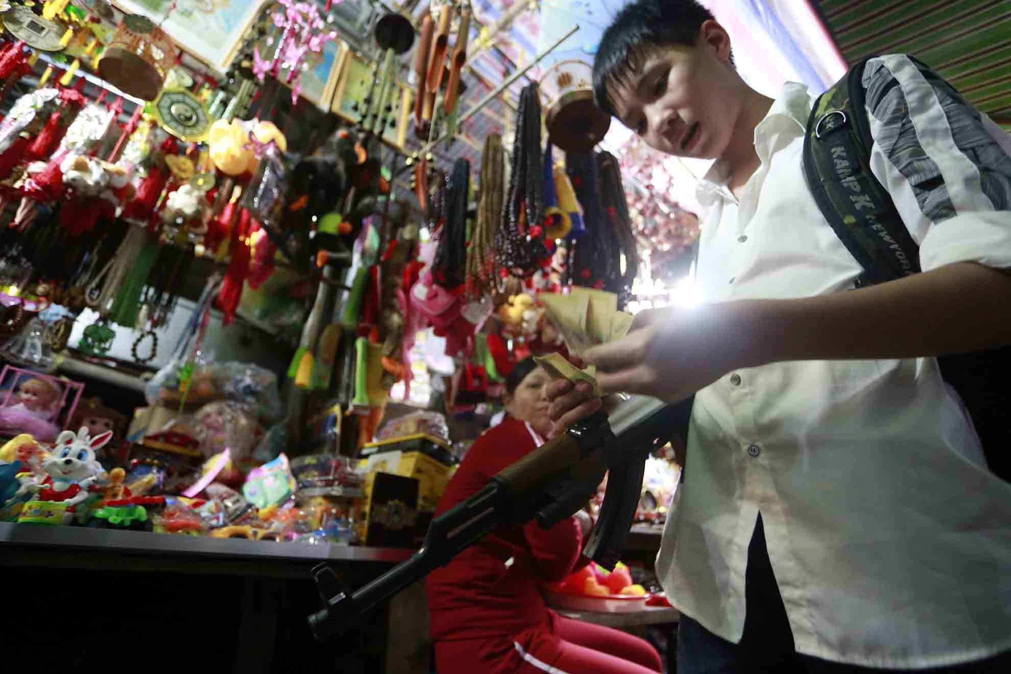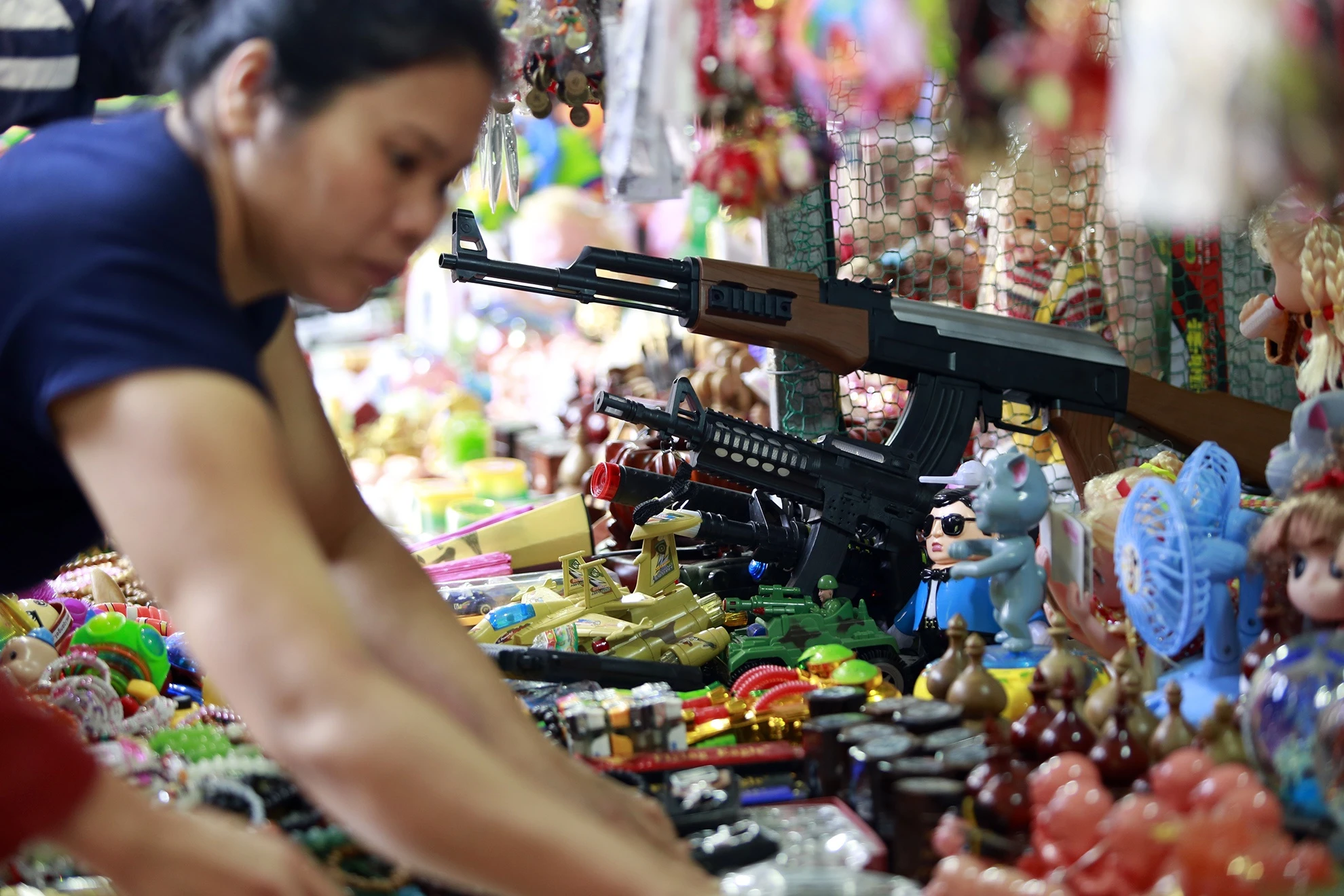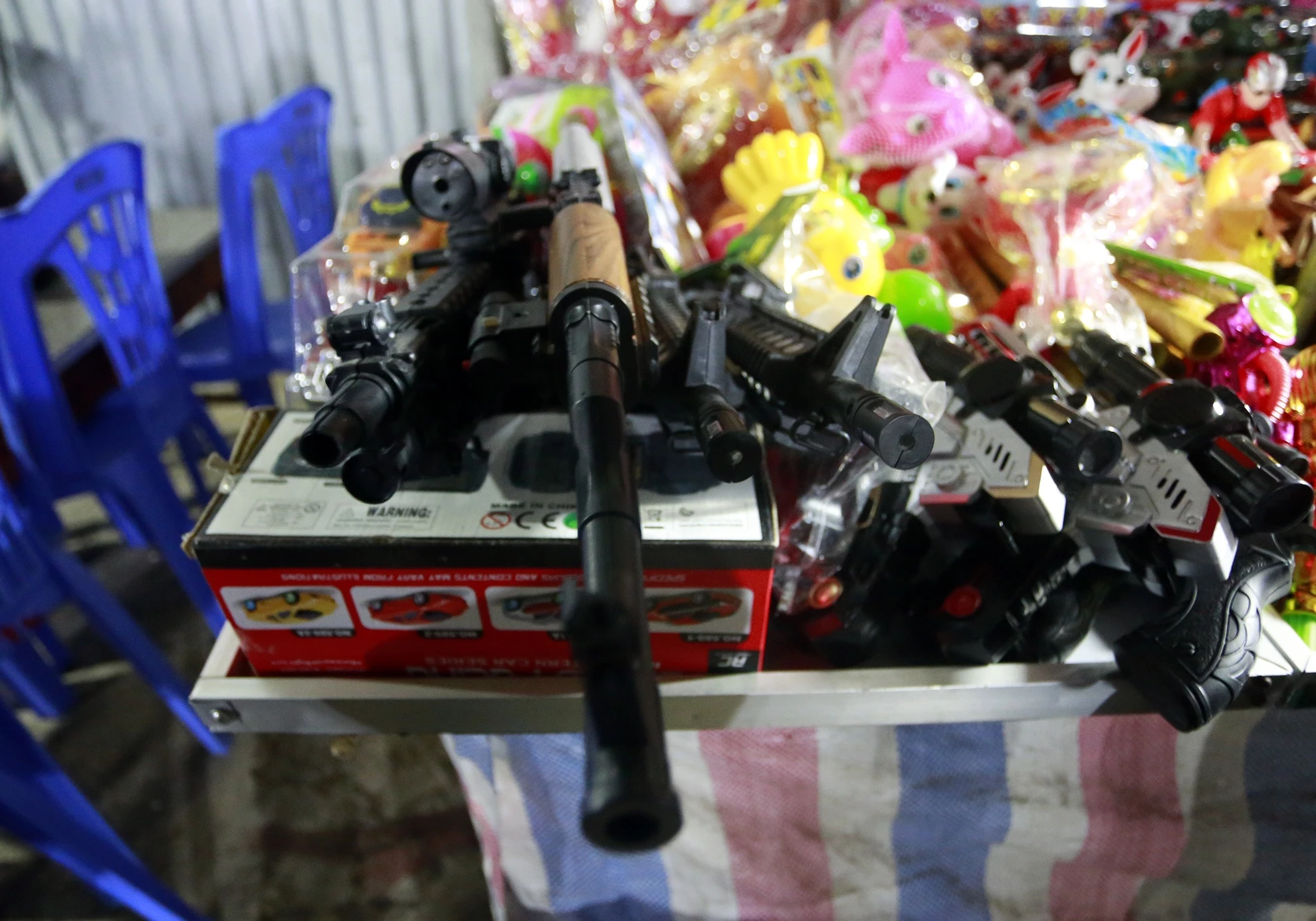 Hình dáng của những món đồ chơi bạo lực này giống hệt súng thật như AK, súng lục... |