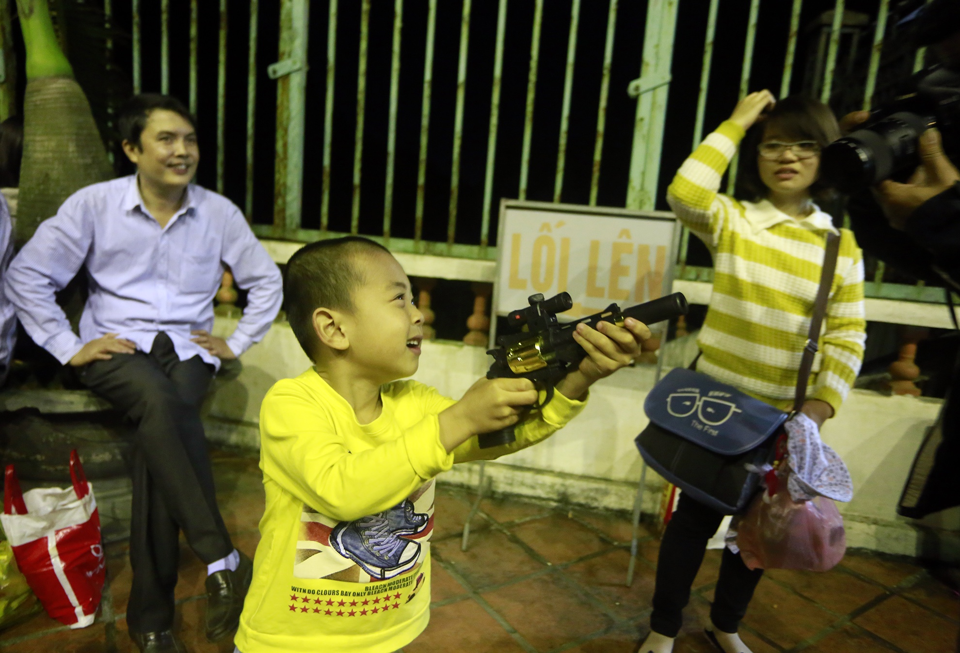 | Cách đây 2 năm, cơ quan công an huyện Mỹ Đức (Hà Nội) đã tiến hành nhiều đợt tịch thu những loại đồ chơi nguy hiểm này, tuy nhiên lễ hội chùa Hương năm 2014, các loại đồ chơi sát thương lại bắt đầu xuất hiện. |