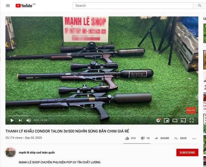 | Súng hơi còn được rao bán tràn lan trên một số kênh YouTube. |
