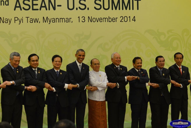 Lãnh đạo ASEAN và Tổng thống Mỹ Barack Obama tại Hội nghị Thượng đỉnh ở Nay Pyi Taw, Myanmar, tháng 11/2014. Ảnh: Gov.my |