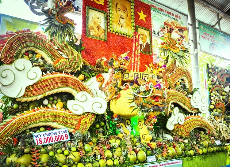 Đặc biệt, du khách sẽ chiêm ngưỡng những tác phẩm nghệ thuật tạo hình bằng trái cây ấn tượng. Đây là hoạt động chủ đạo của lễ hội nhằm gìn giữ và tôn vinh nghệ thuật đặc biệt của người dân đất phương Nam. Từ đôi bàn tay khéo léo, những nghệ nhân đa tài không ngừng sáng tạo, thổi hồn vào các tác phẩm tạo hình bằng trái cây. |