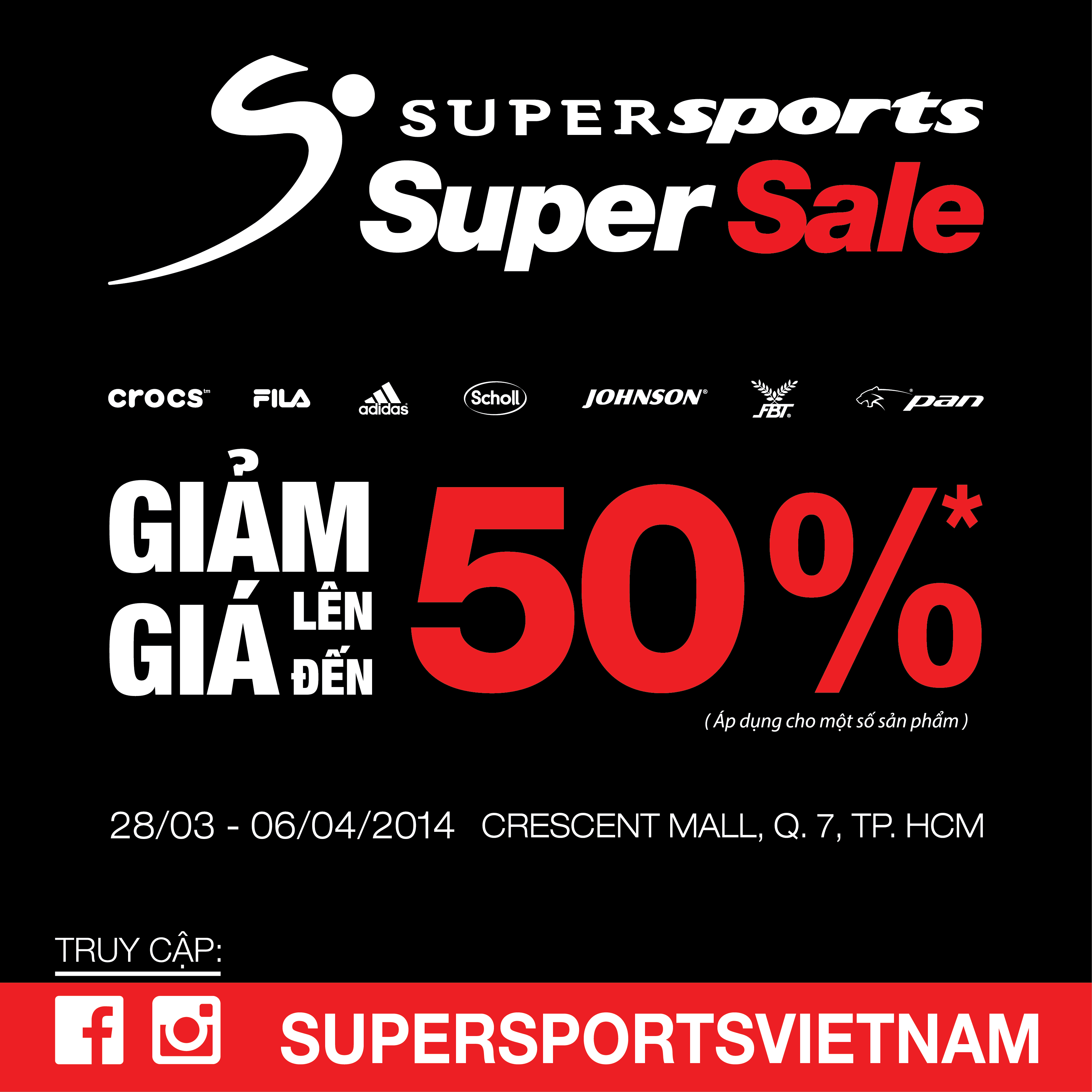 Supersports super sale bắt đầu vào ngày 28/3 đến 6/4 tại khu vực sự kiện, tiền sảnh, Crescent Mall, Q.7, TP.HCM.