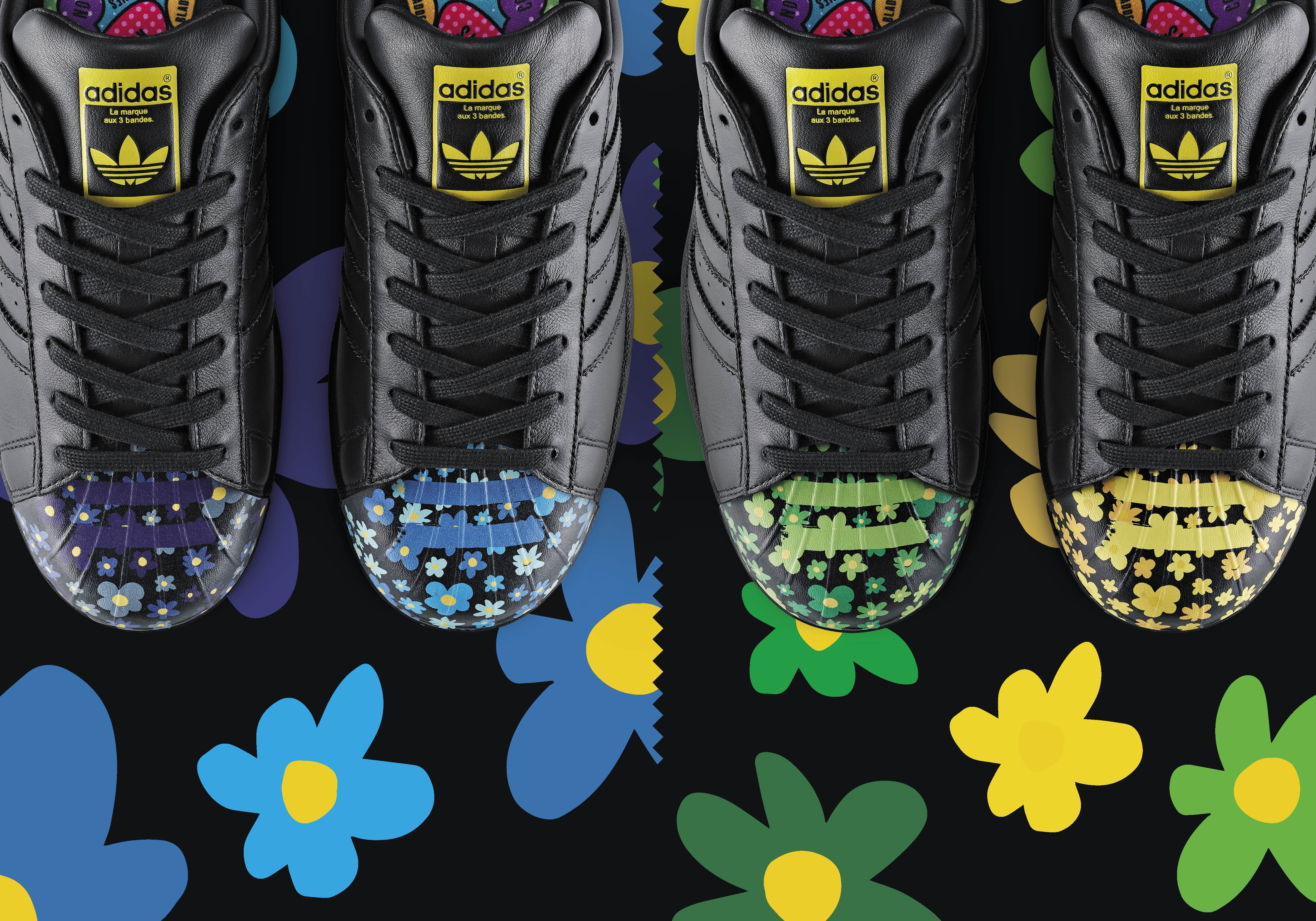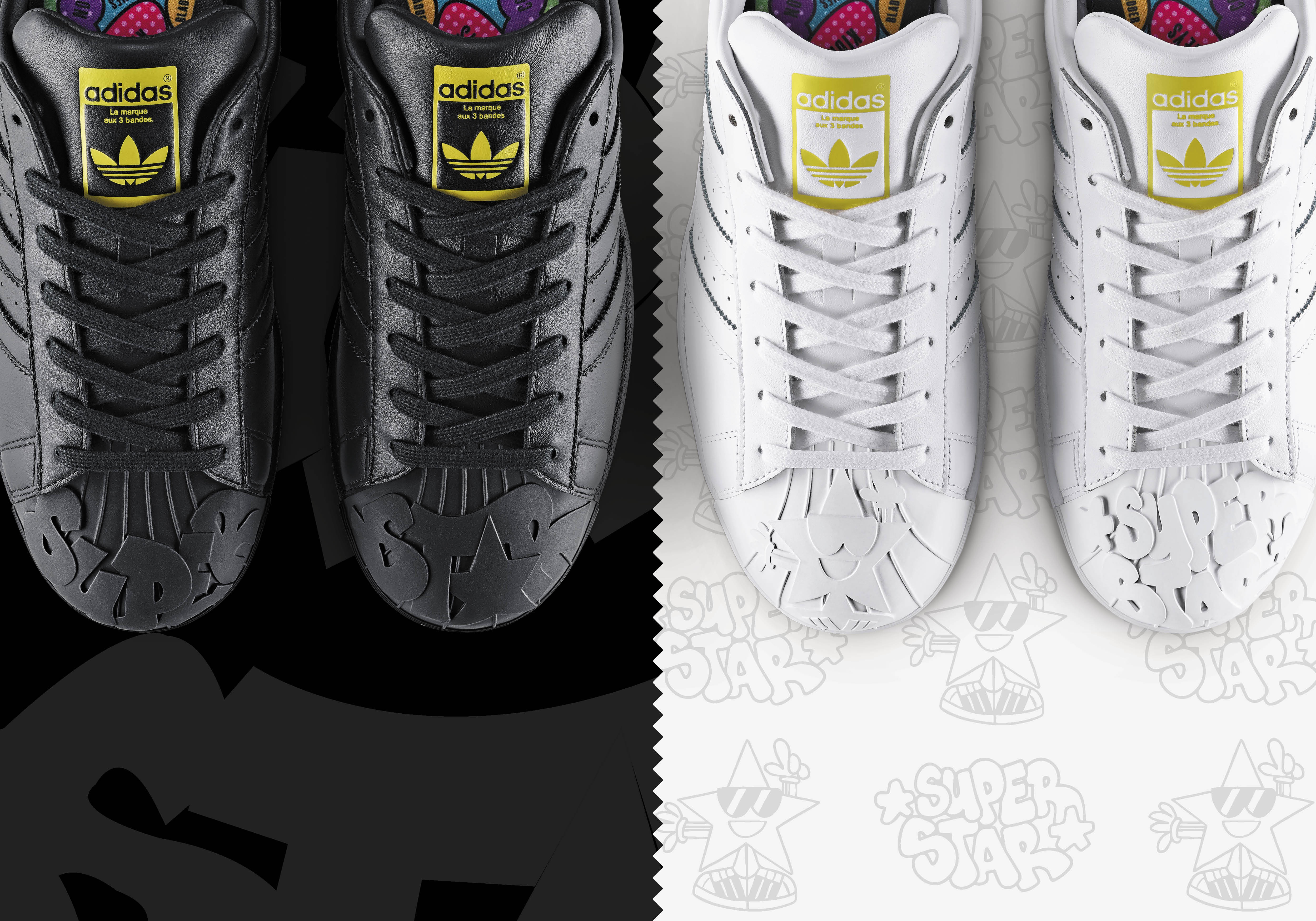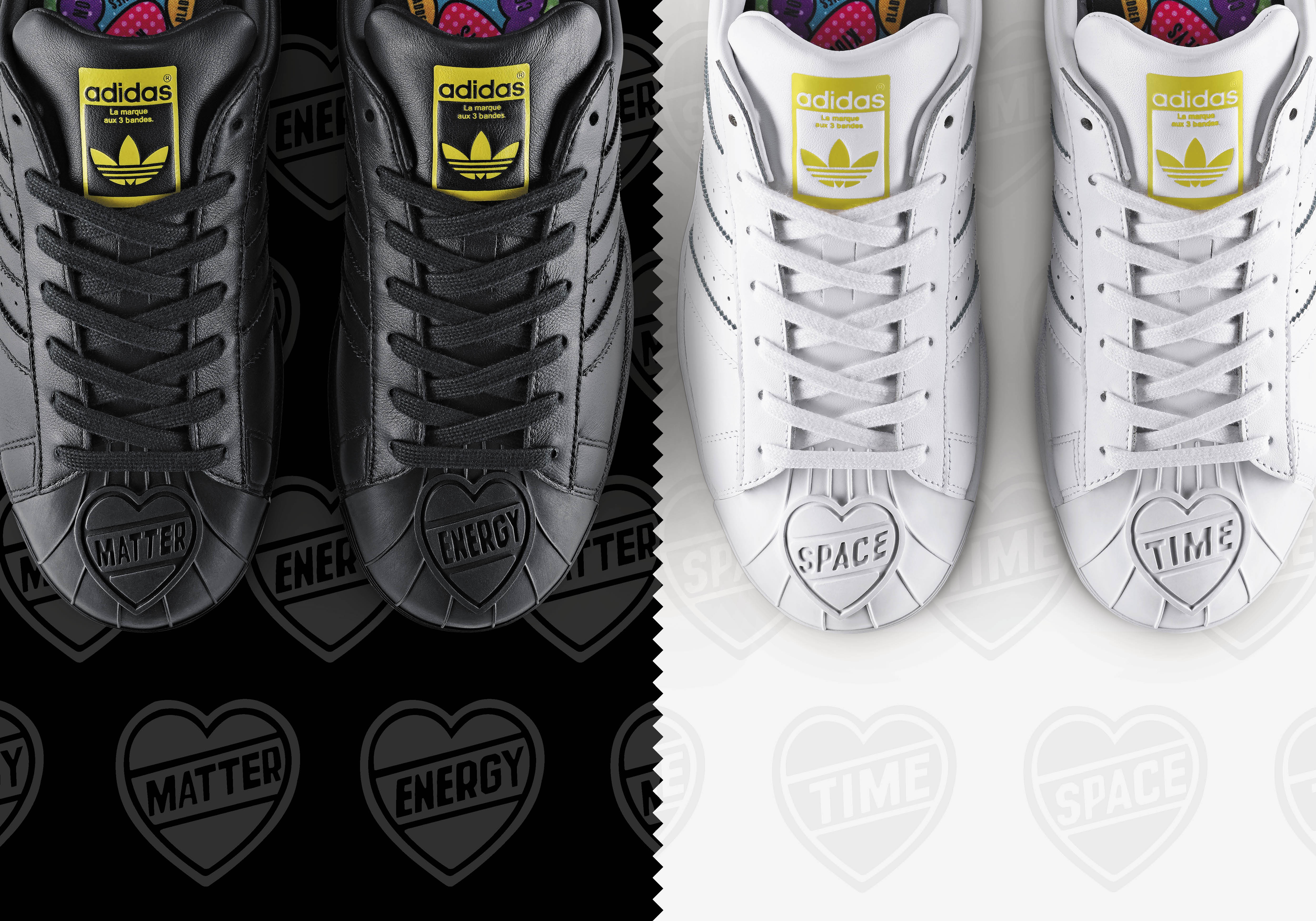 | Trong bộ sưu tập này, sự kết hợp giữa nghệ thuật và sáng tạo được thể hiện lần đầu tiên trên Supershell của dòng giày Superstar. Hình ảnh vỏ sò - Shelltoe - của Superstar trở nên sống động với họa tiết đặc trưng được thiết kế bởi Todd James - họa sĩ đương đại đến từ New York, họa sĩ Mr. với phong cách anime đến từ Nhật, hay Cass Bird nhiếp ảnh gia kiêm đạo diễn người Mỹ. Tất cả sáng tác của các nghệ sỹ này sẽ được kết nối với 6 tác phẩm nghệ thuật của Pharrell, cùng lúc đó thể hiện sự khám phá năng lượng từ cuộc sống và sự hài hòa trong cách phối màu. Họa sĩ Mr. là một bậc thầy phù thủy và tác phẩm của Mr. luôn gợi nhắc về tuổi thơ của mỗi người. |