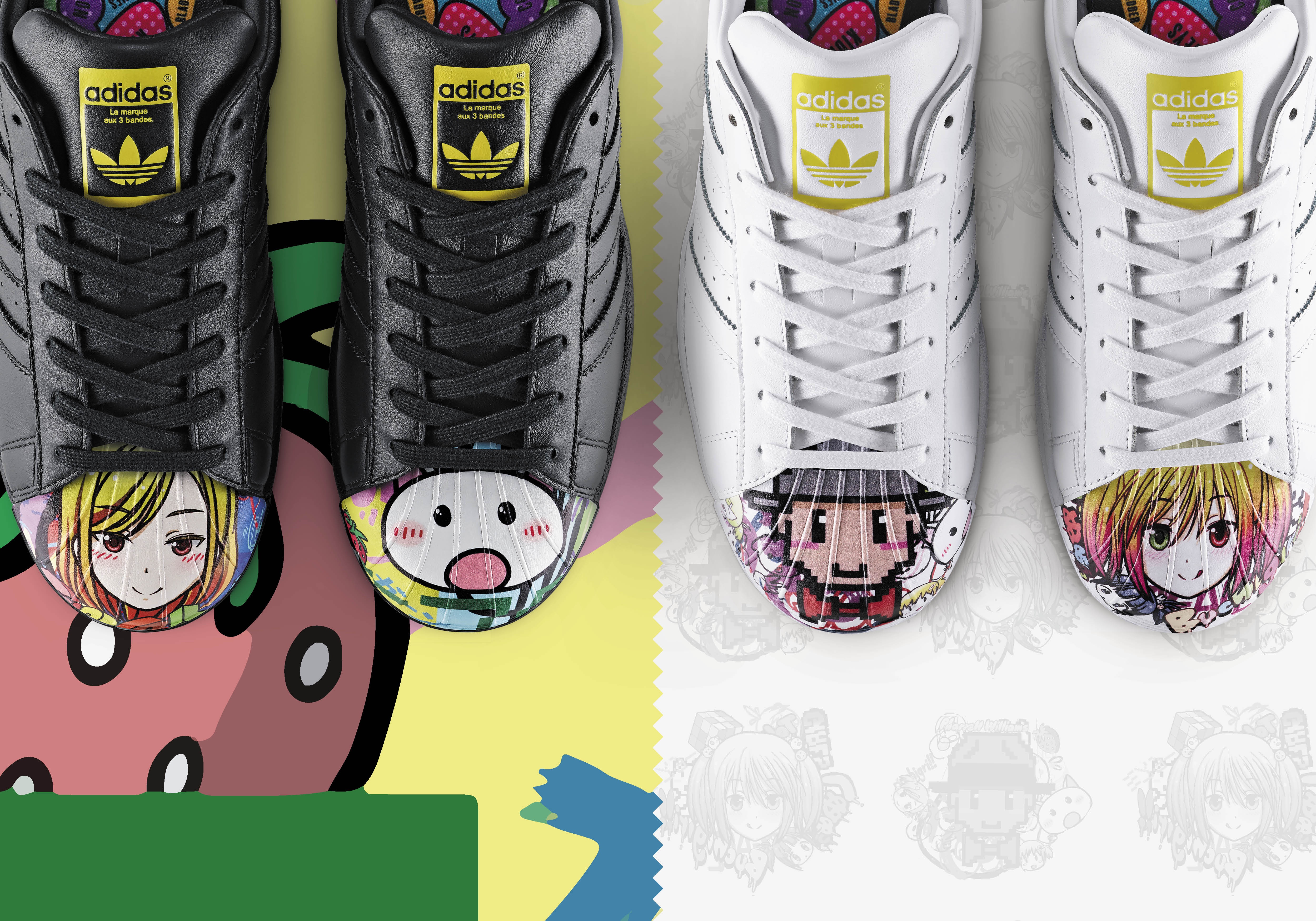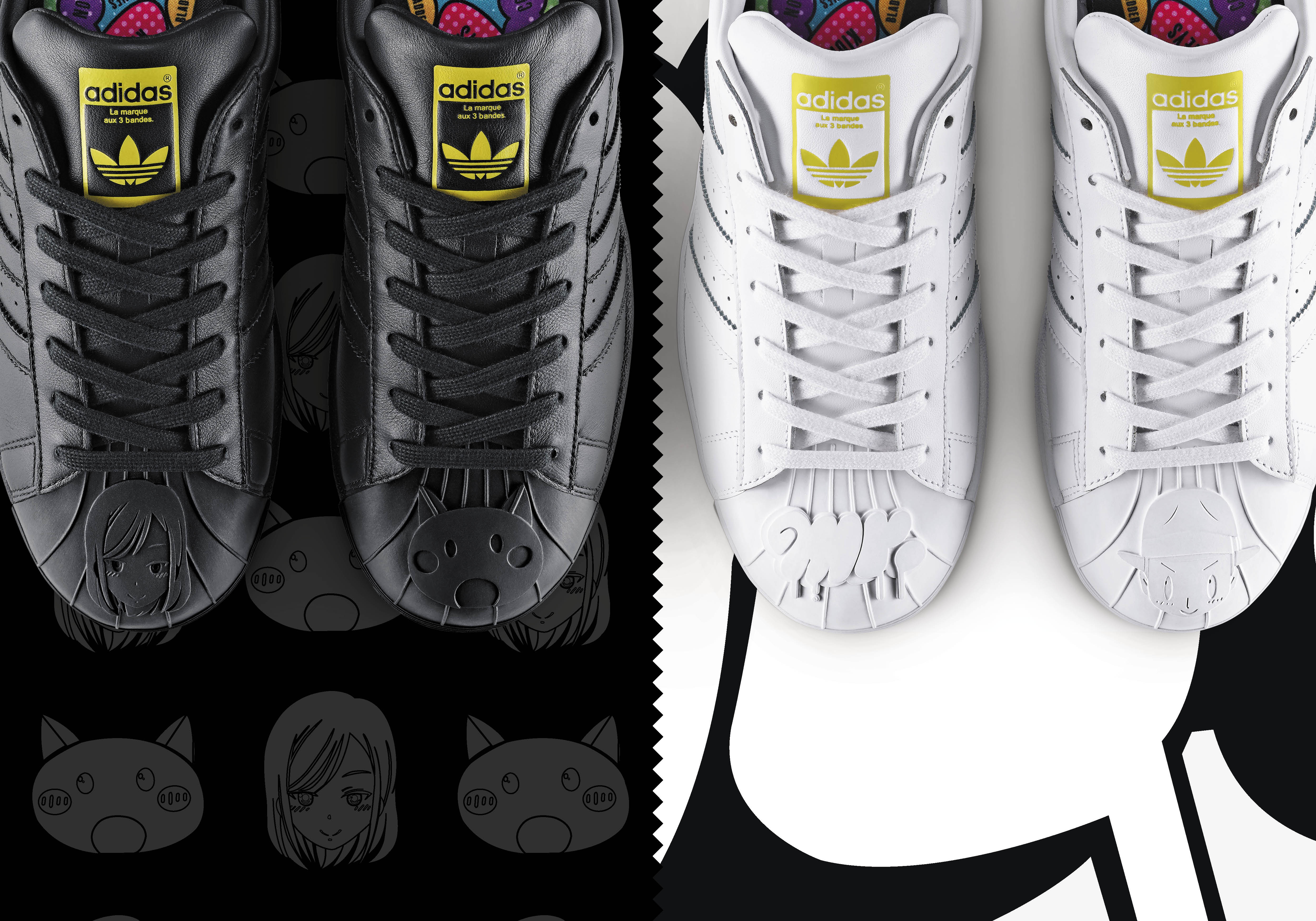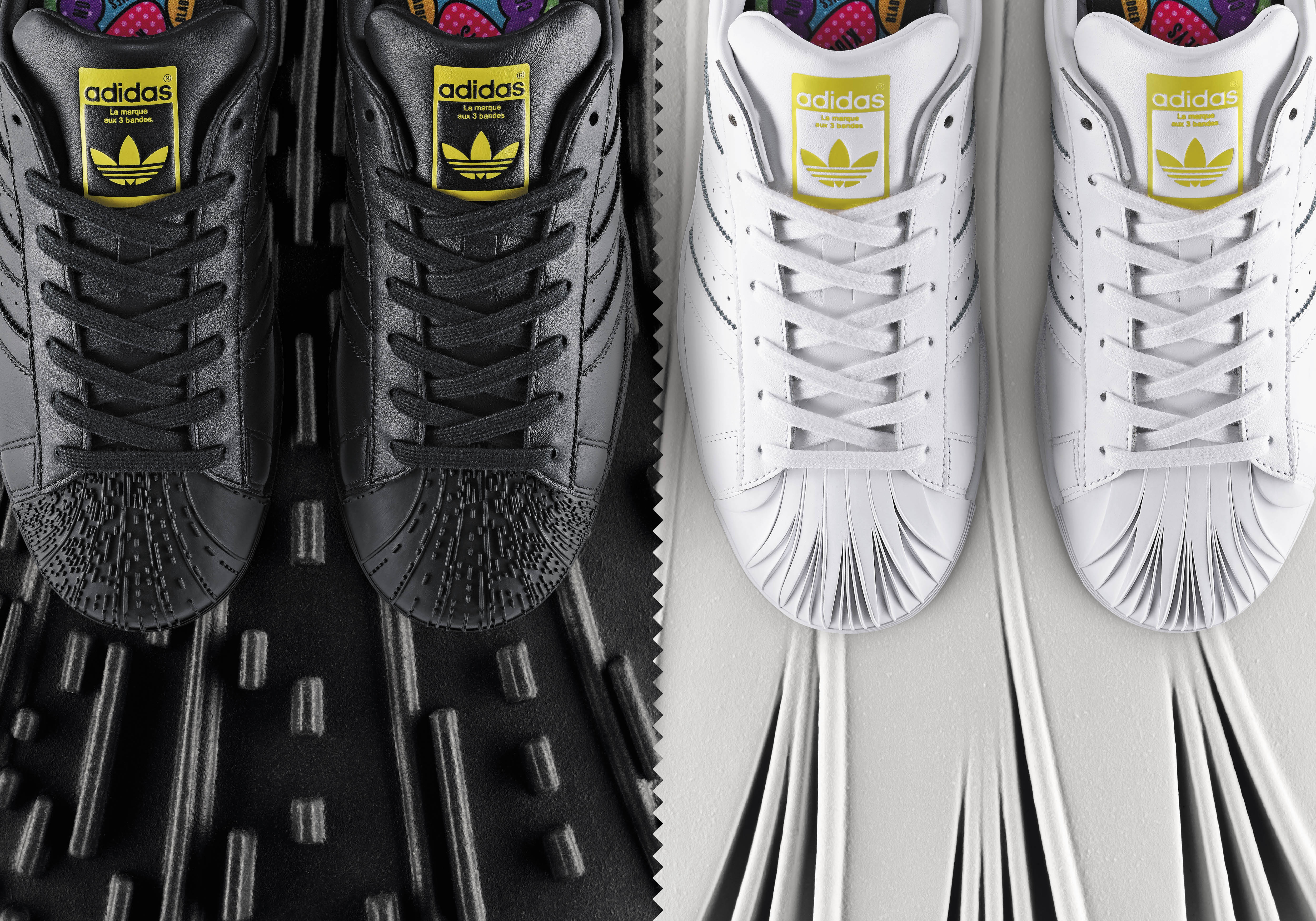 | Trong bộ sưu tập này, sự kết hợp giữa nghệ thuật và sáng tạo được thể hiện lần đầu tiên trên Supershell của dòng giày Superstar. Hình ảnh vỏ sò - Shelltoe - của Superstar trở nên sống động với họa tiết đặc trưng được thiết kế bởi Todd James - họa sĩ đương đại đến từ New York, họa sĩ Mr. với phong cách anime đến từ Nhật, hay Cass Bird nhiếp ảnh gia kiêm đạo diễn người Mỹ. Tất cả sáng tác của các nghệ sỹ này sẽ được kết nối với 6 tác phẩm nghệ thuật của Pharrell, cùng lúc đó thể hiện sự khám phá năng lượng từ cuộc sống và sự hài hòa trong cách phối màu. Họa sĩ Mr. là một bậc thầy phù thủy và tác phẩm của Mr. luôn gợi nhắc về tuổi thơ của mỗi người. |