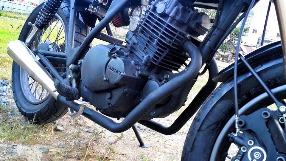 | Từ chiếc Suzuki GN250 cũ, nhóm thự độ Tự Thanh Đa tại Sài Sòn thay đổi hoàn toàn thiết kế xe. Sản phẩm độ mới mang phong cách tracker bụi bặm. |