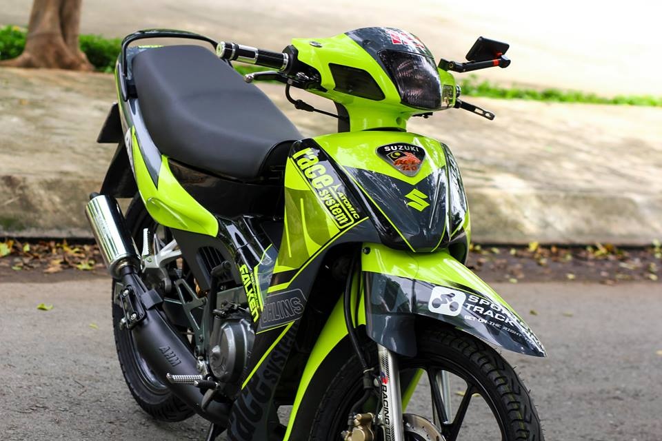 Mẫu xe côn tay với dàn áo sơn phối hai màu đen và xanh Neon tạo sự khác biệt so với so với những chiếc "Su xì po" khác.