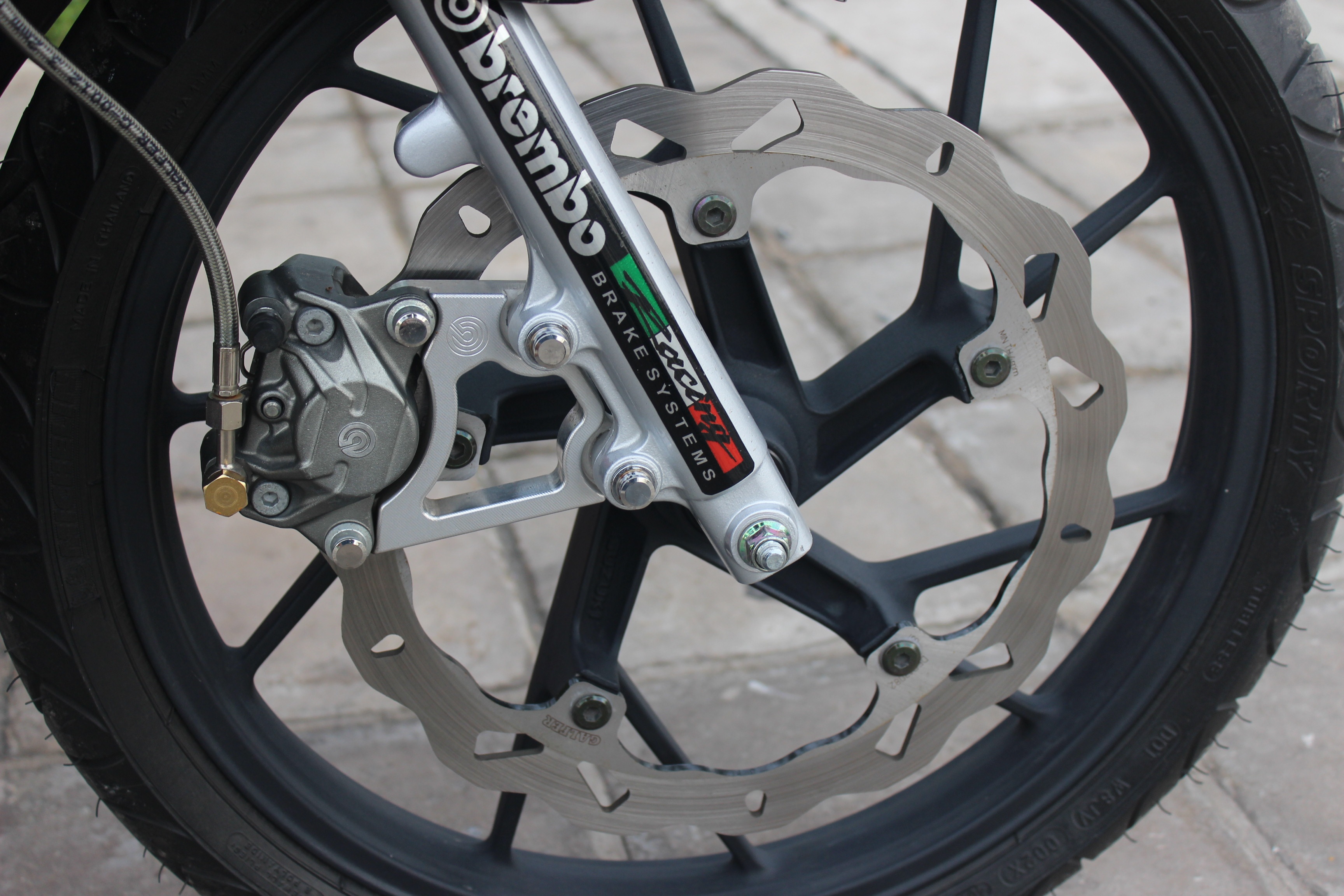 | Ngoài ra là cặp đĩa, dây dầu Galfer 220mm, heo dầu Brembo Ducati 1199 ( Pat CNC) và cặp mâm Raider (Made in Thailand) cho bánh trước và sau. |