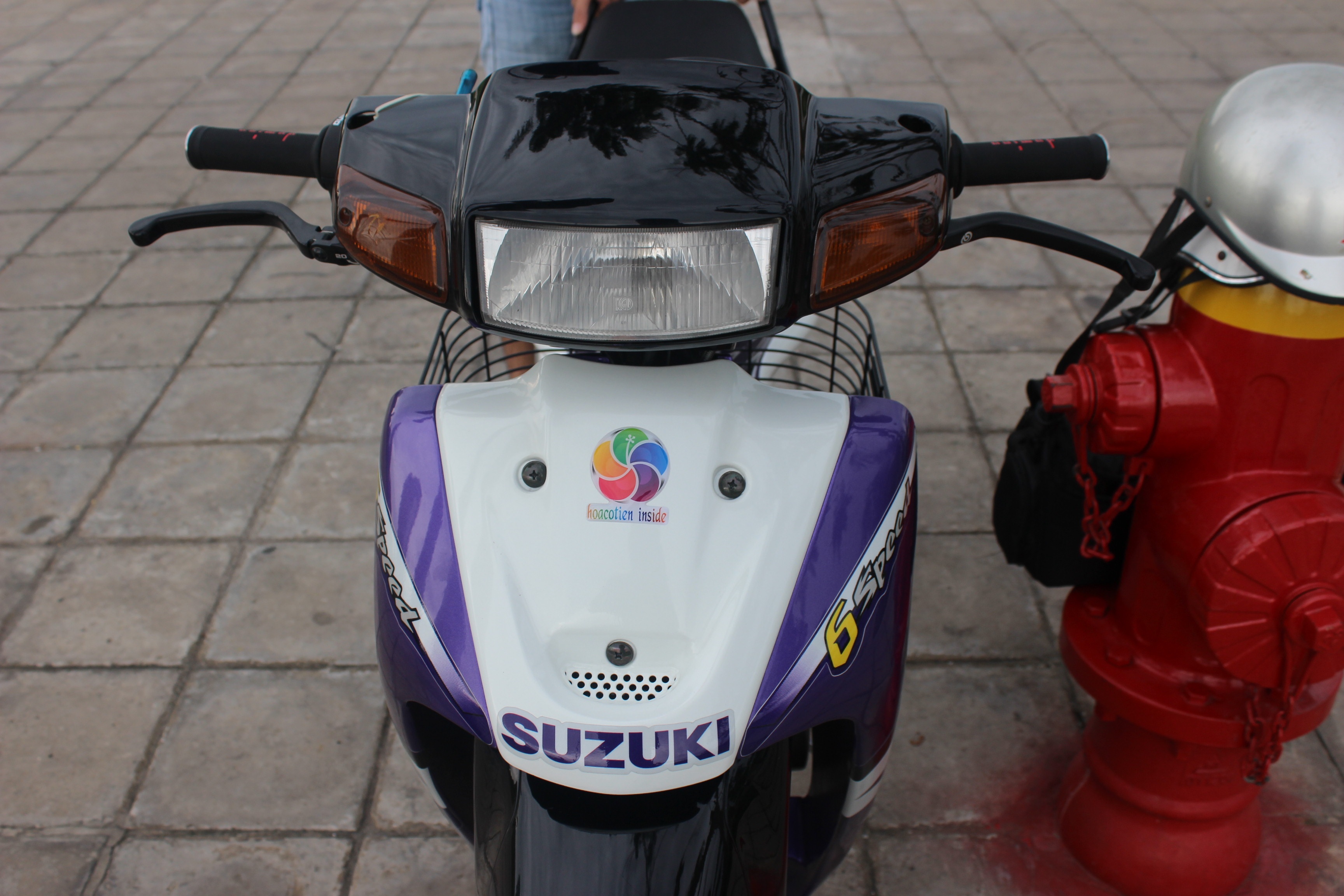 Chiếc xe hai thì Suzuki Sport đời 2000 lên một số đồ chơi hàng hiệu, chủ yếu đắp chiếu, trùm mền chứ ít khi được sử dụng, đang được chủ nhân của nó rao bán với giá 140 triệu đồng.
