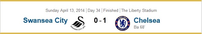 Chelsea giành lợi thế cực lớn trong chuyến làm khách trên sân của Swansea khi trung vệ Chico của đội chủ nhà bị tước quyền thi đấu ngay ở phút 16. Tuy nhiên, có vẻ như sức ép quá lớn từ chiến thắng của Liverpool trước Man City (3-2) khiến đôi chân của các cầu thủ áo xanh trở nên căng cứng. Bởi vậy, dù tạo được sức ép cực lớn về phía khung thành Michel Vorm, The Blues vẫn không thể có bàn thắng. Ngược lại, nếu thủ thành Petr Cech không chơi xuất sắc, đội khách đã thủng lưới ở phút 43 sau cú sút trời giáng của Nathan Dyer.