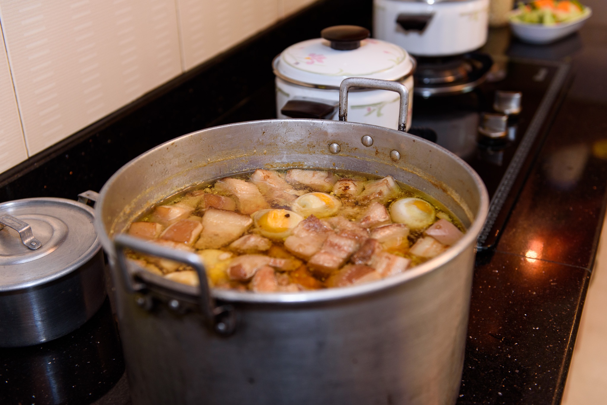Thịt kho hột vịt là món ăn ưa thích của người miền Nam, gia đình Sỹ Luân cũng không ngoại lệ. Anh thích các món ăn mẹ nấu và thường khen tài nấu nướng của "cô gái" theo cách gọi vui của anh. |
