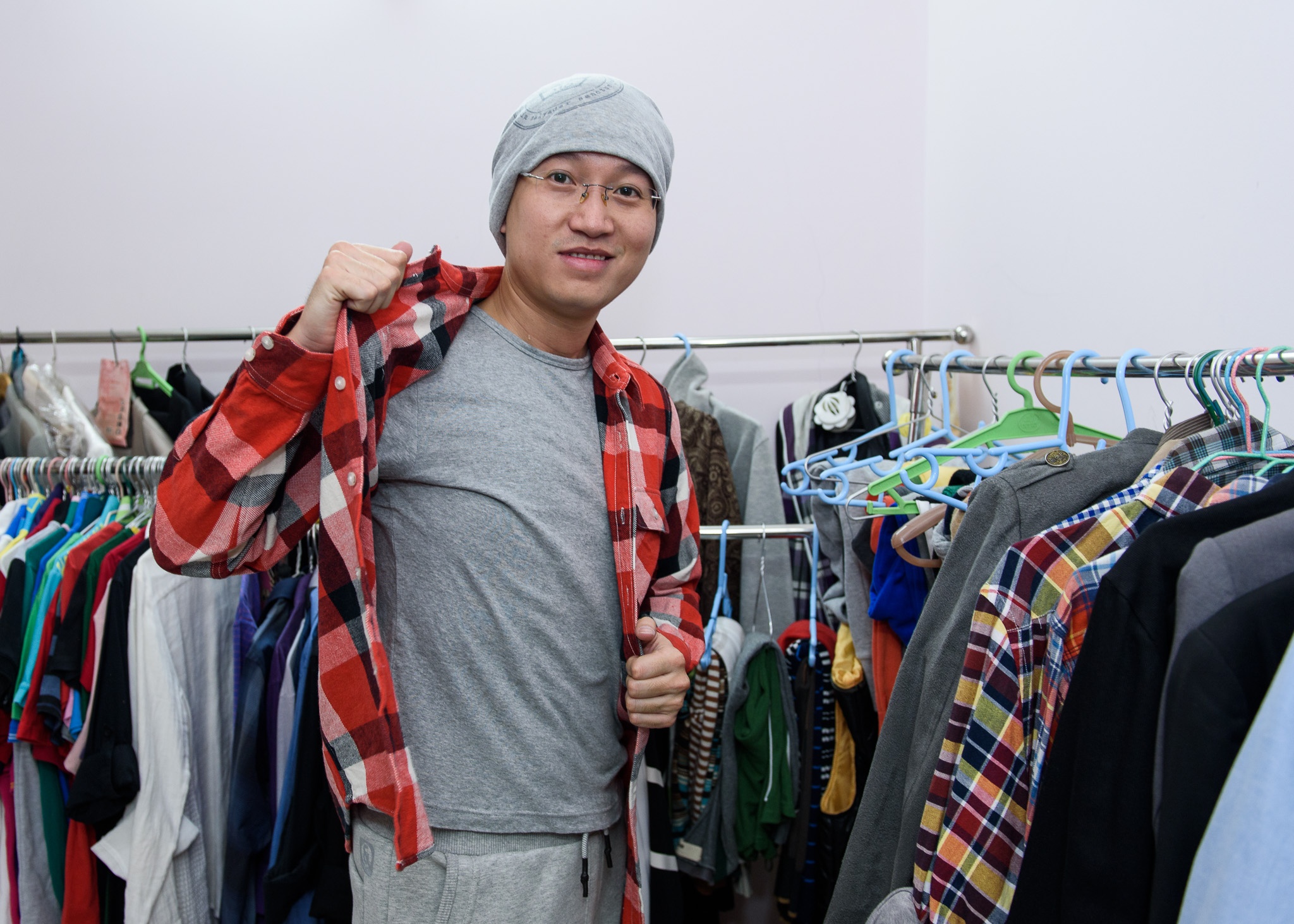 Mặc dù tất bật chạy show trong những ngày Tết nhưng Sỹ Luân cũng háo hức chuẩn bị quần áo du xuân. |